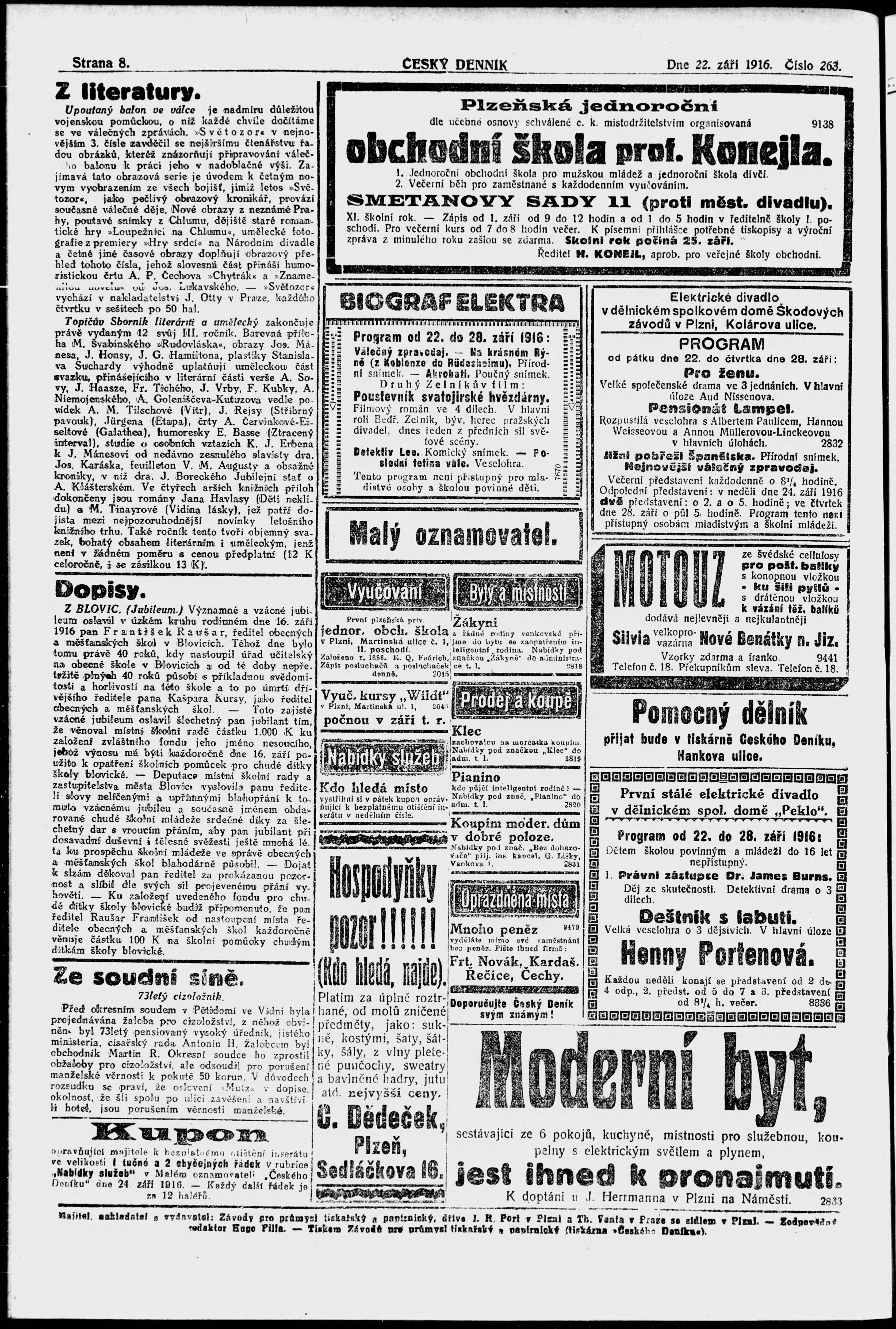 * Datum vydání výtisku: 22.9.1916 Číslo výtisku: 263