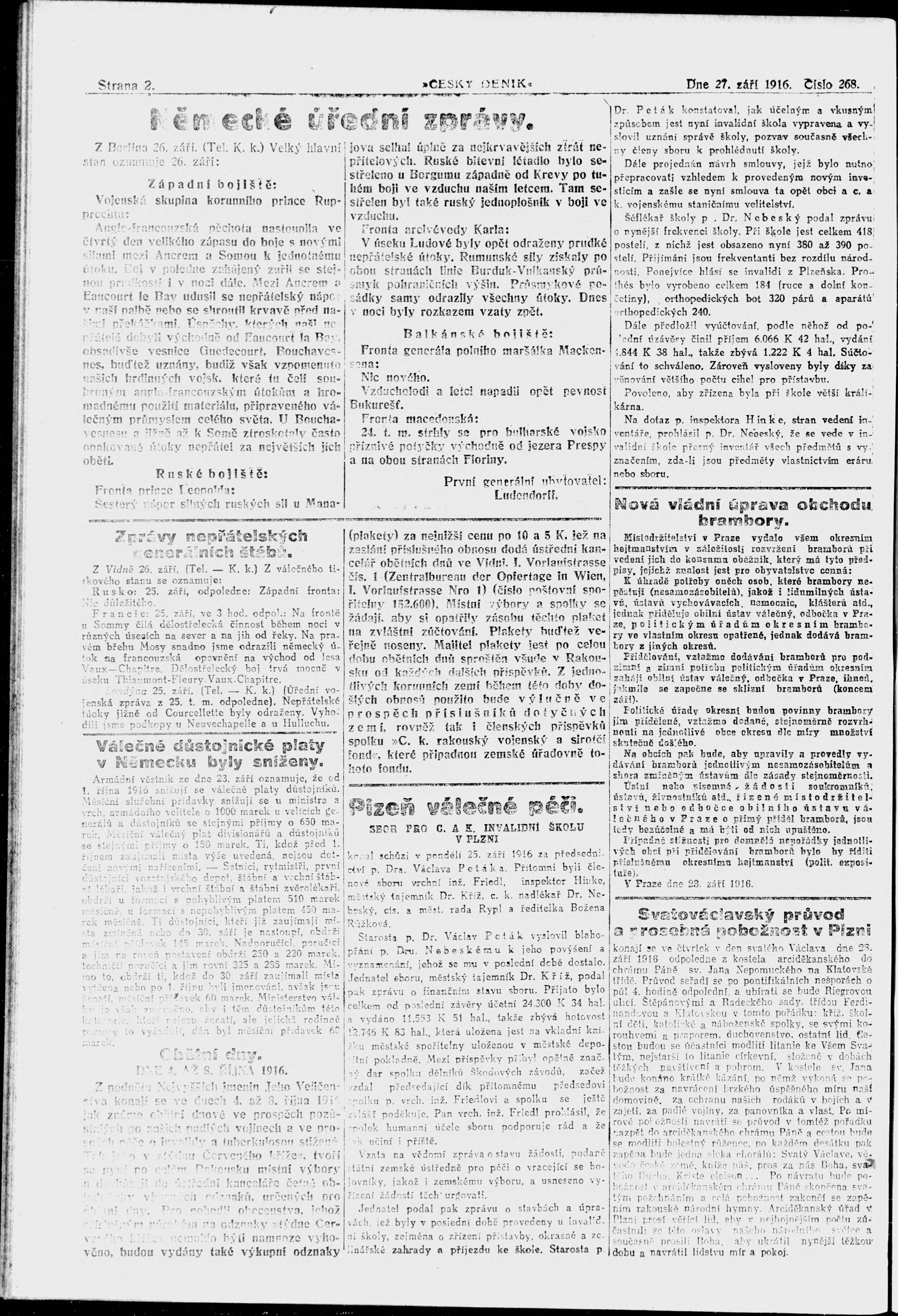 * Datum vydání výtisku: 27.9.1916 Číslo výtisku: 268