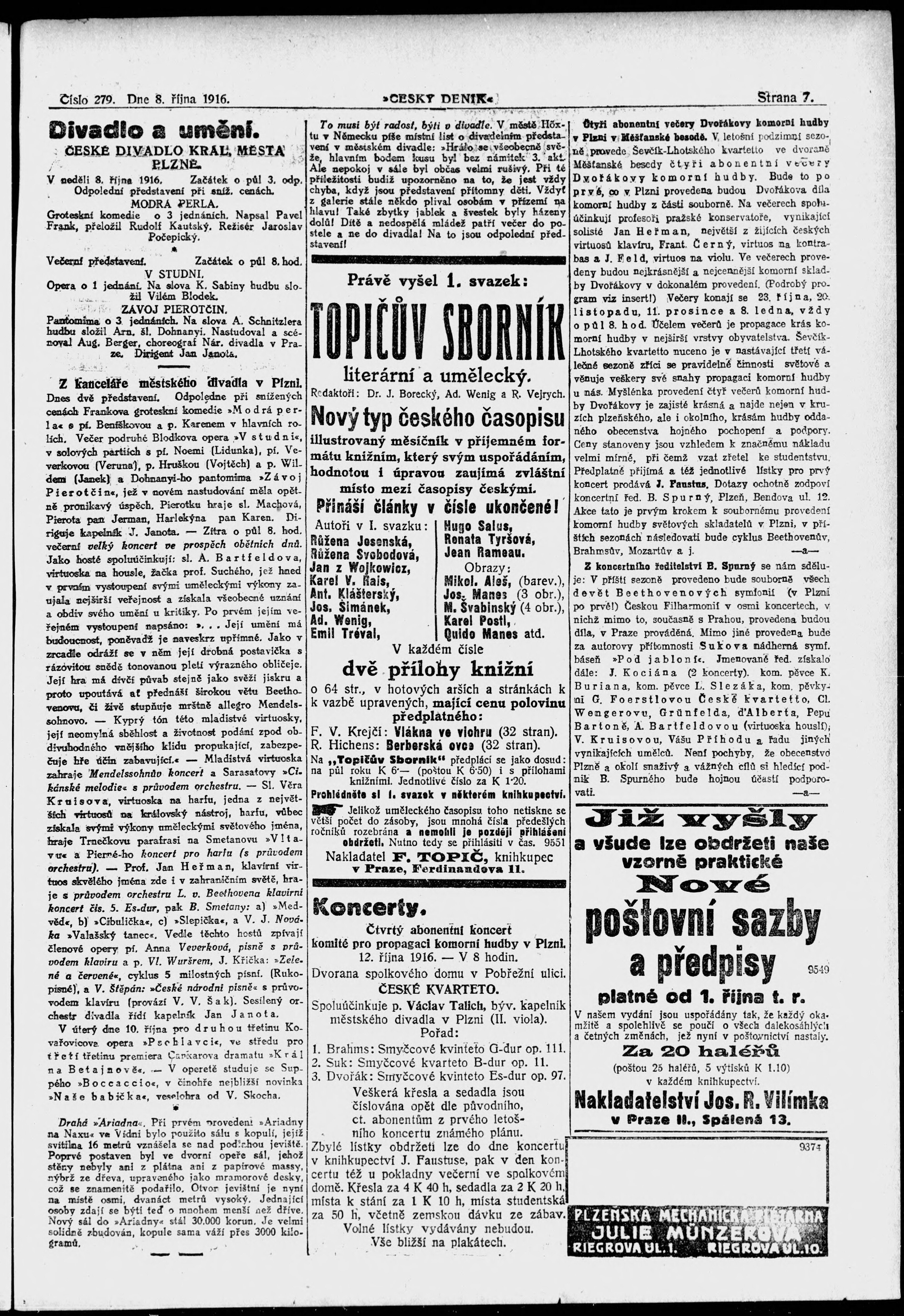 * Datum vydání výtisku: 8.10.1916 Číslo výtisku: 279