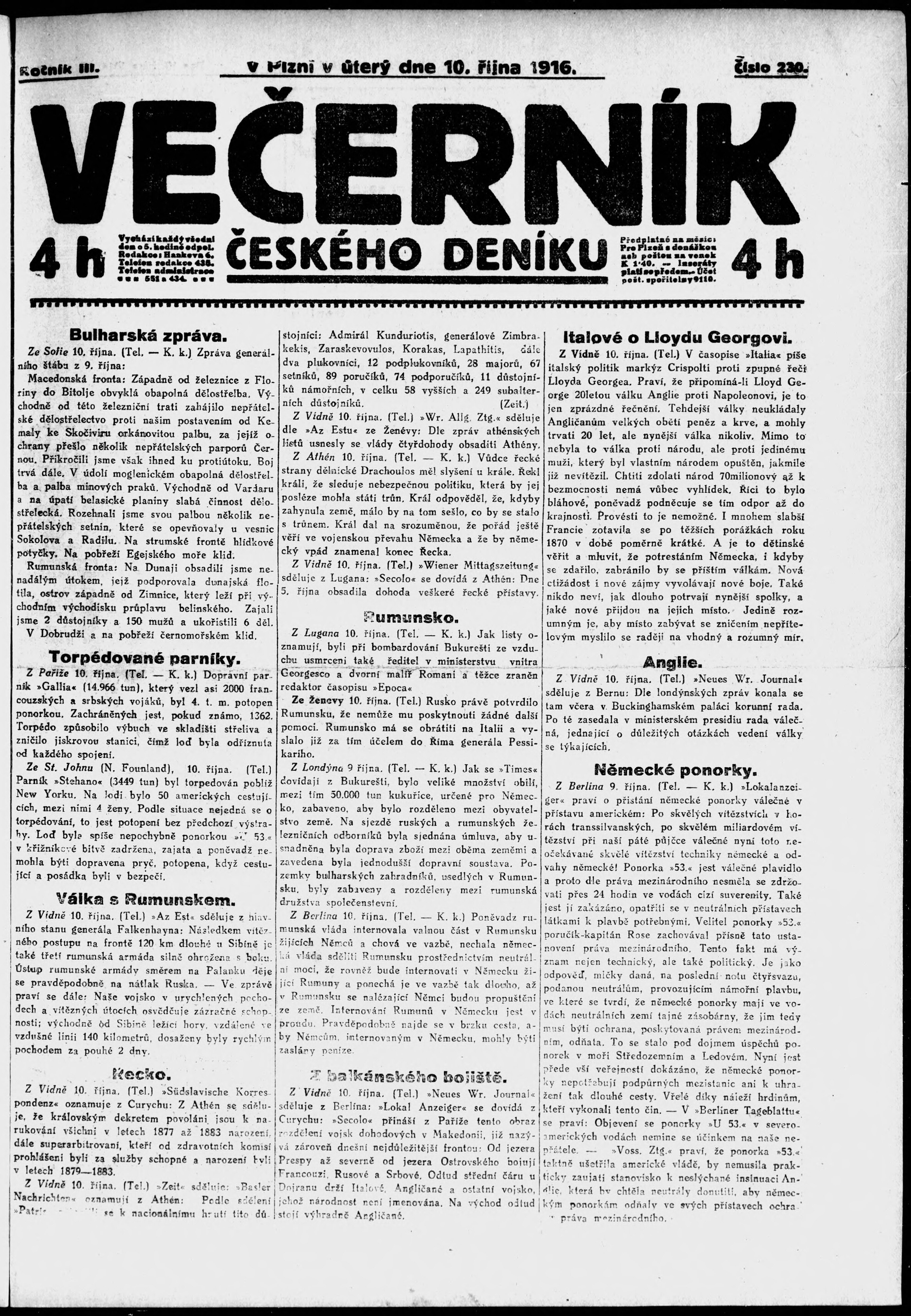 večerní vydání;
