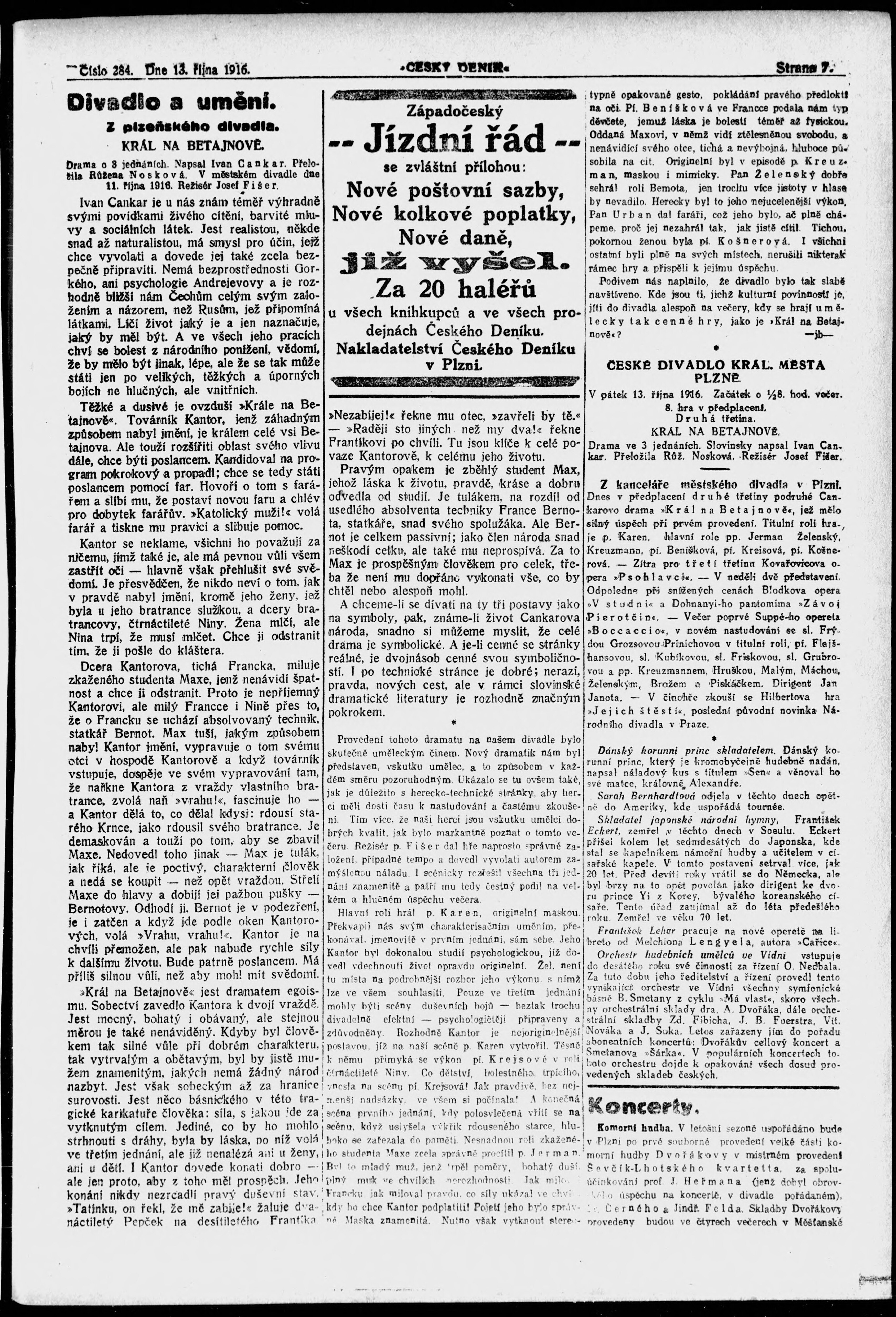 * Datum vydání výtisku: 13.10.1916 Číslo výtisku: 284