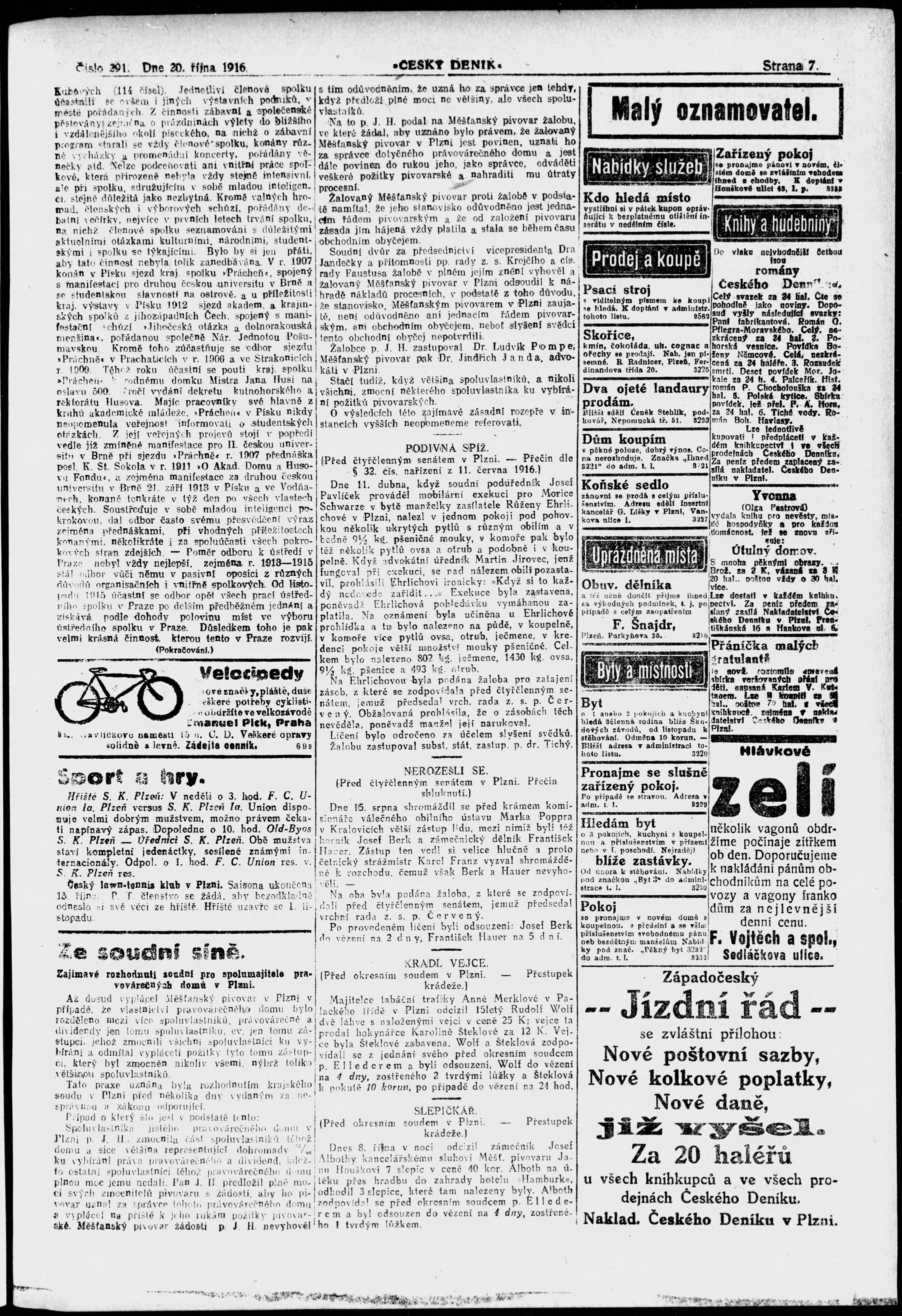 * Datum vydání výtisku: 20.10.1916 Číslo výtisku: 291