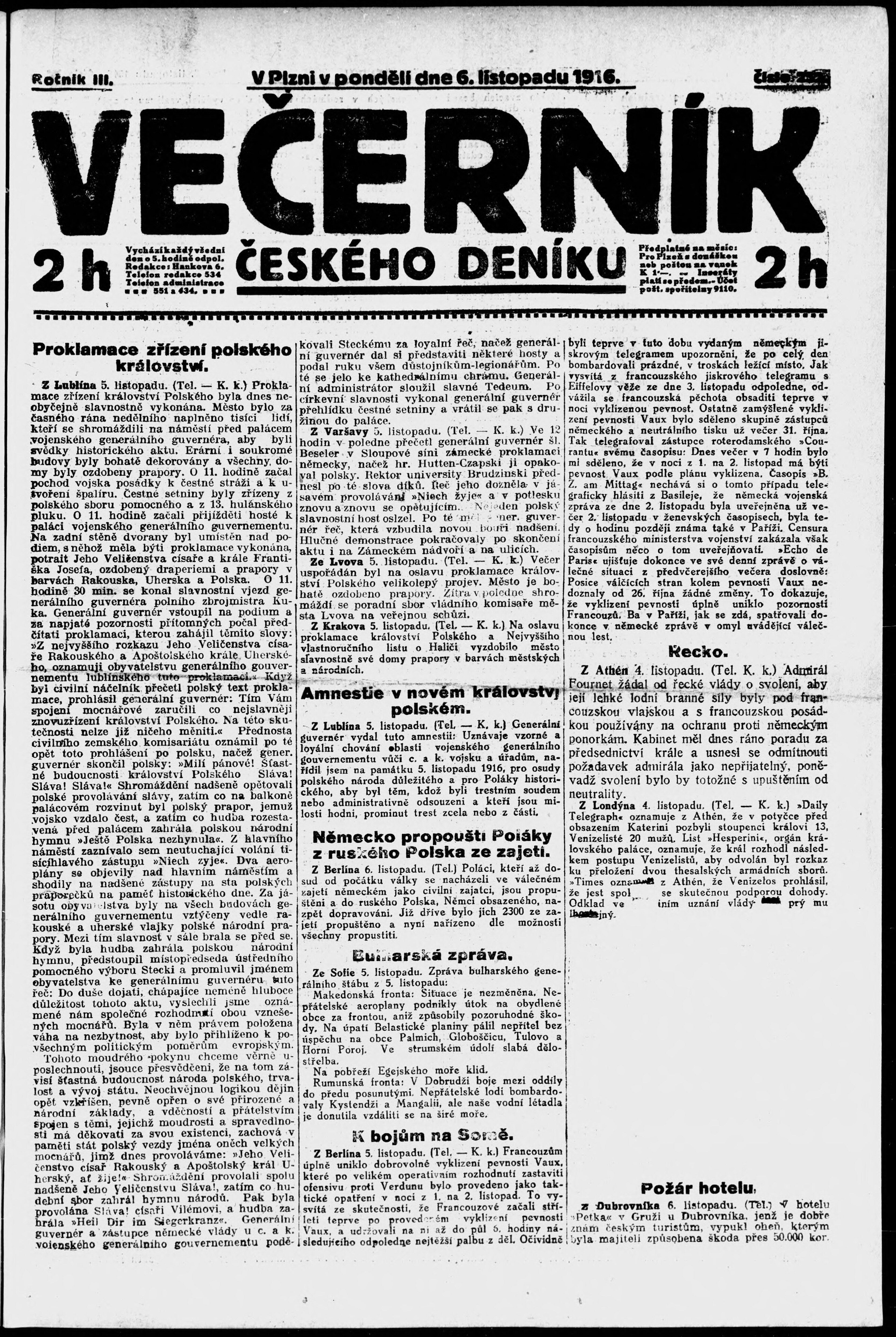 * Datum vydání výtisku: 6.11.1916 Číslo výtisku: 252 Poznámky k výtisku: večerní vydání;