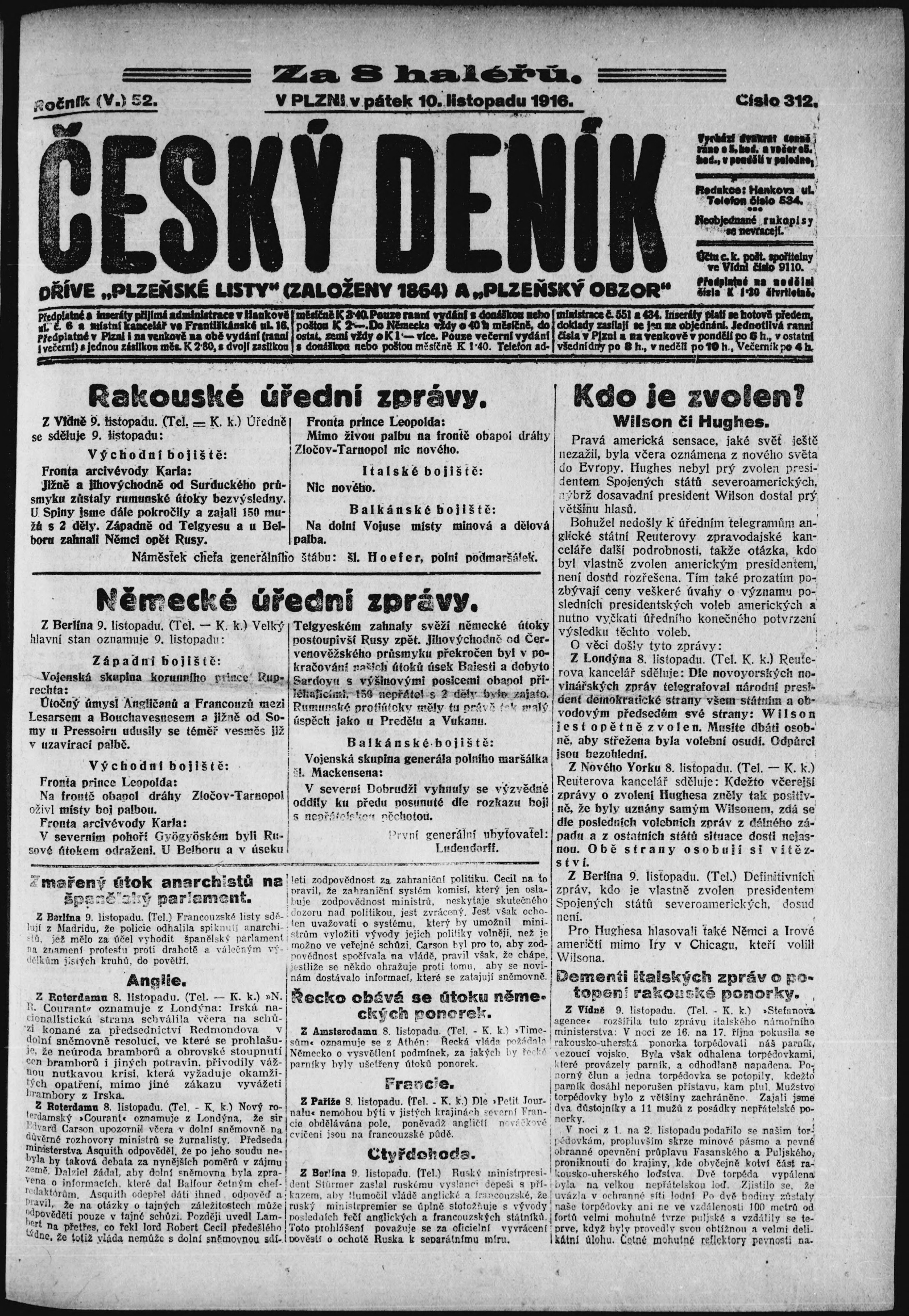* Datum vydání výtisku: 10.11.1916 Číslo výtisku: 256 Poznámky k výtisku: večerní vydání;