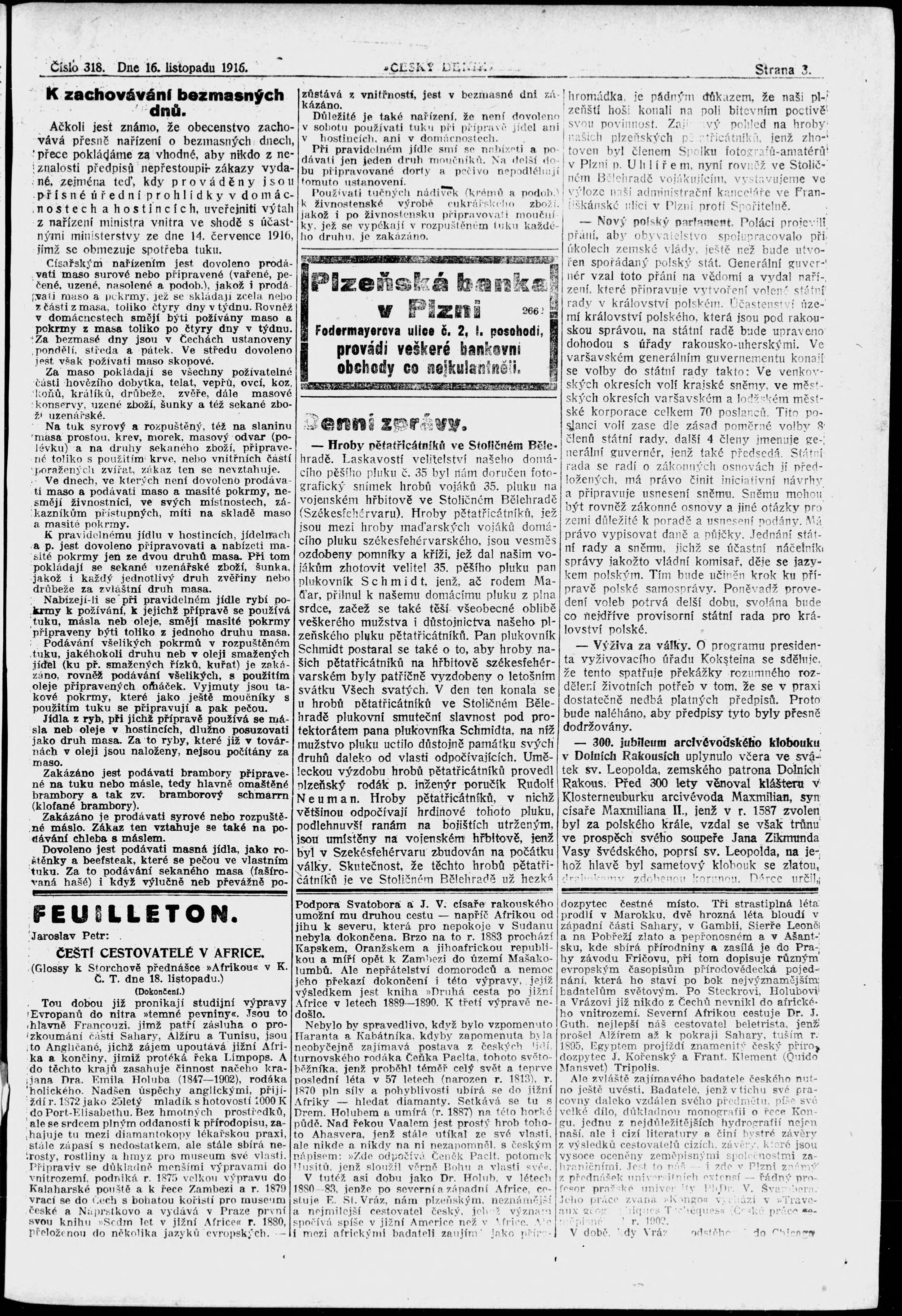 * Datum vydání výtisku: 16.11.1916 Číslo výtisku: 318