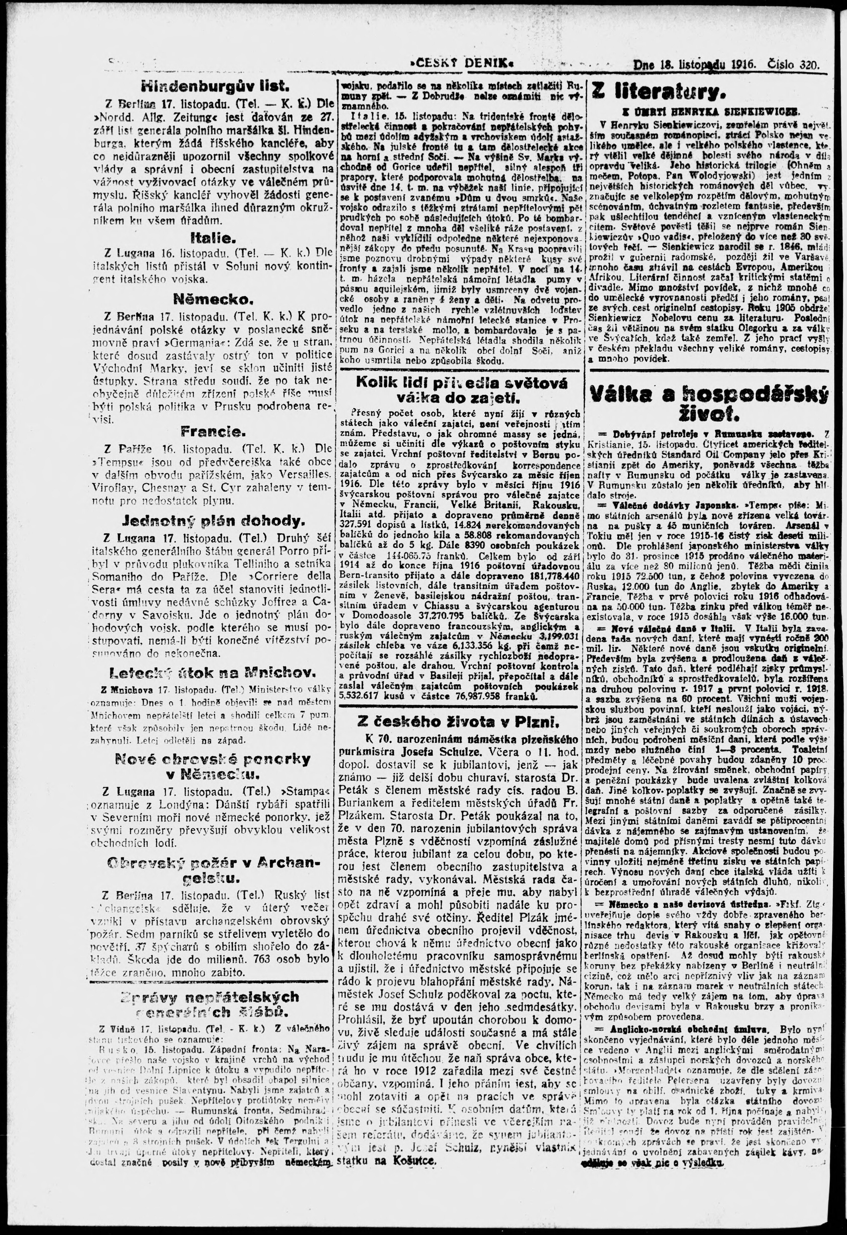 * Datum vydání výtisku: 18.11.1916 Číslo výtisku: 320