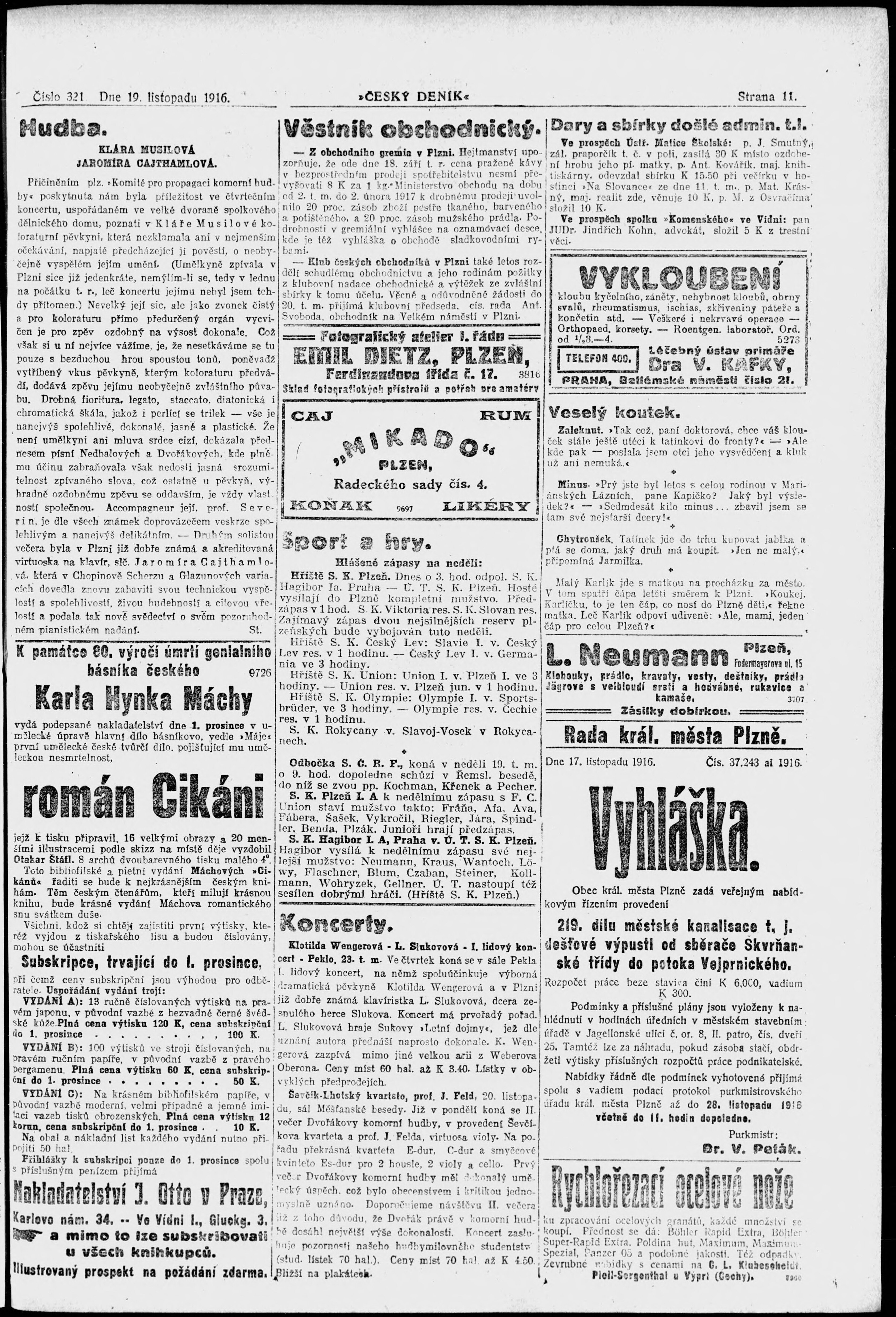* Datum vydání výtisku: 19.11.1916 Číslo výtisku: 321