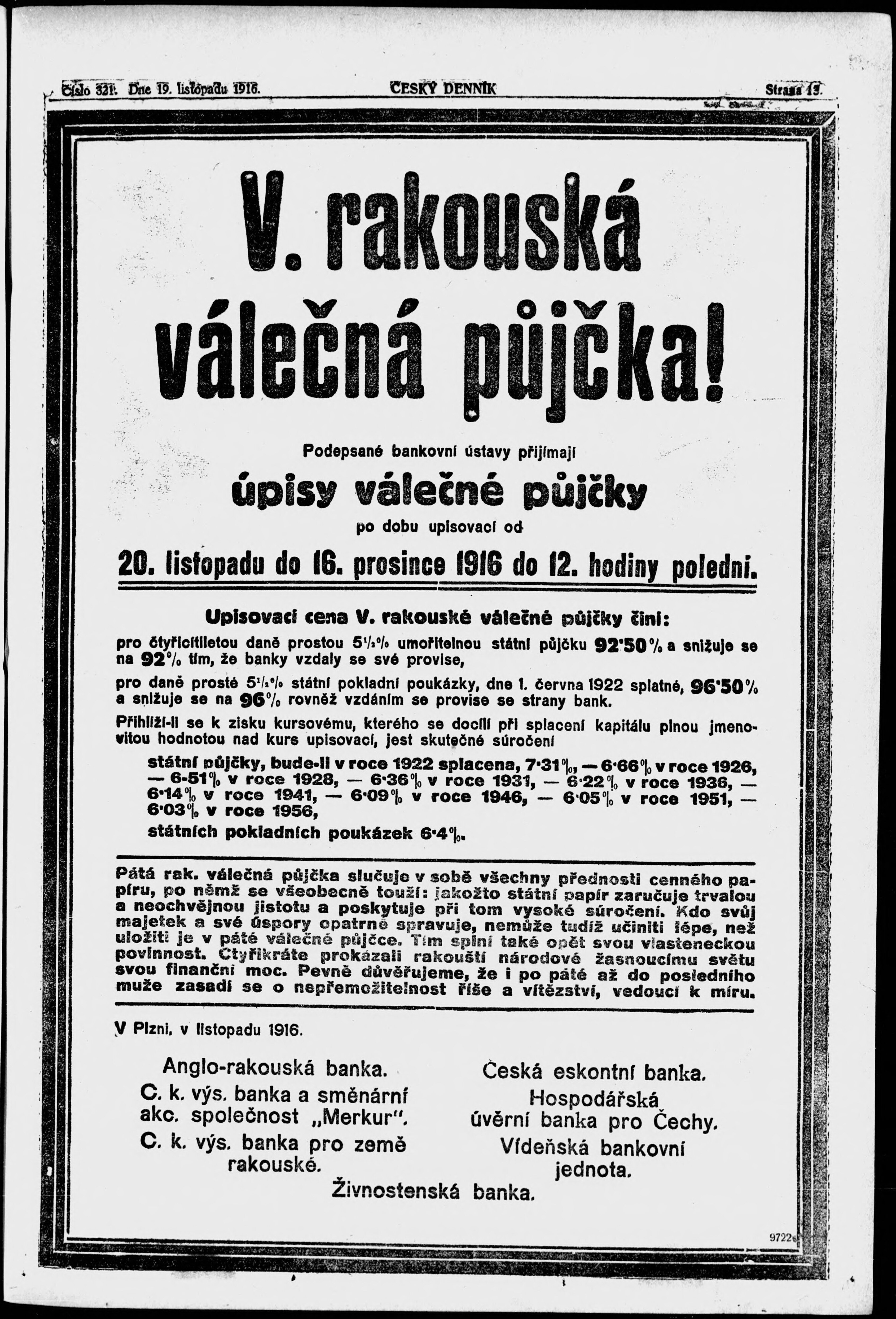 * Datum vydání výtisku: 19.11.1916 Číslo výtisku: 321