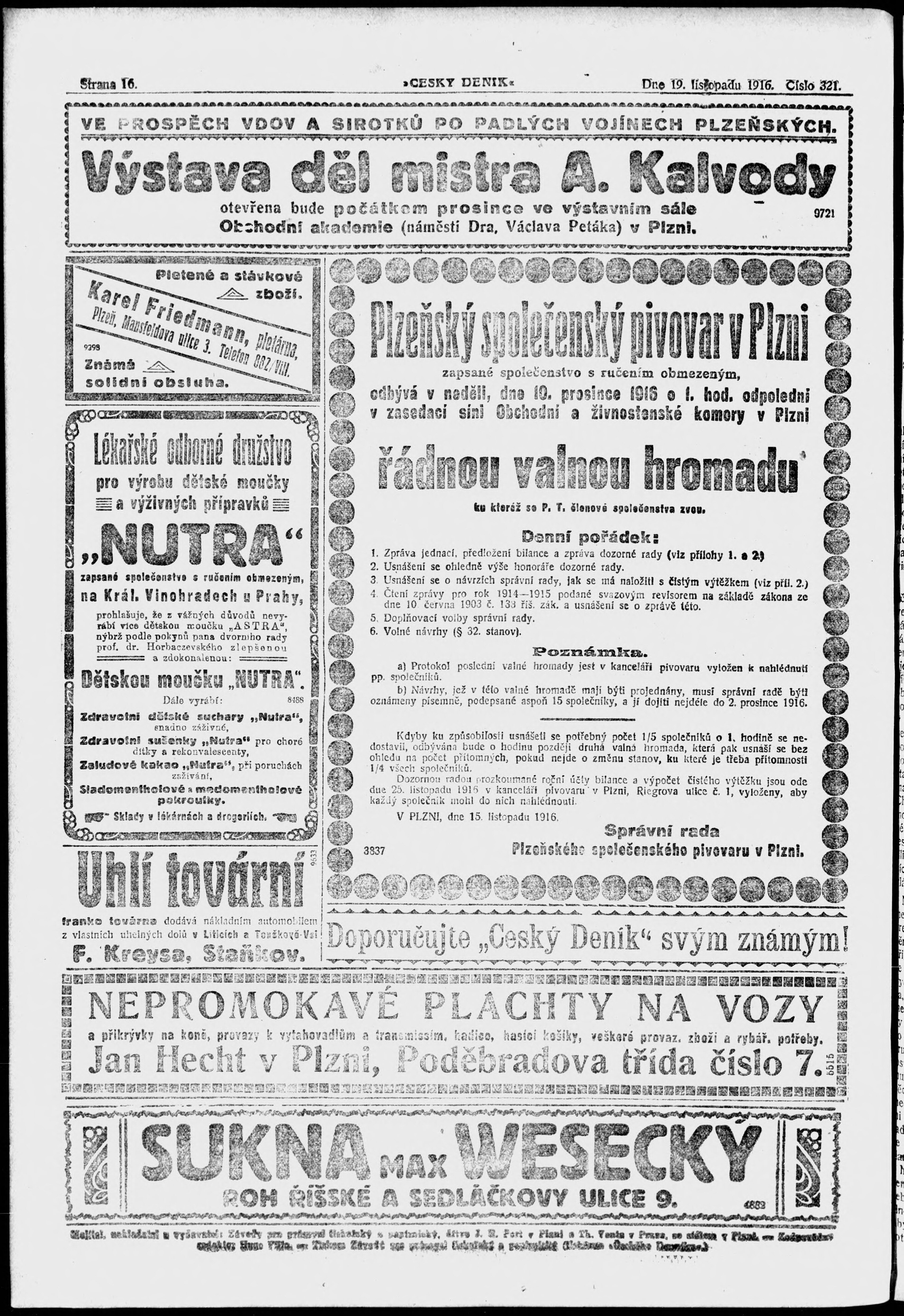 * Datum vydání výtisku: 19.11.1916 Číslo výtisku: 321