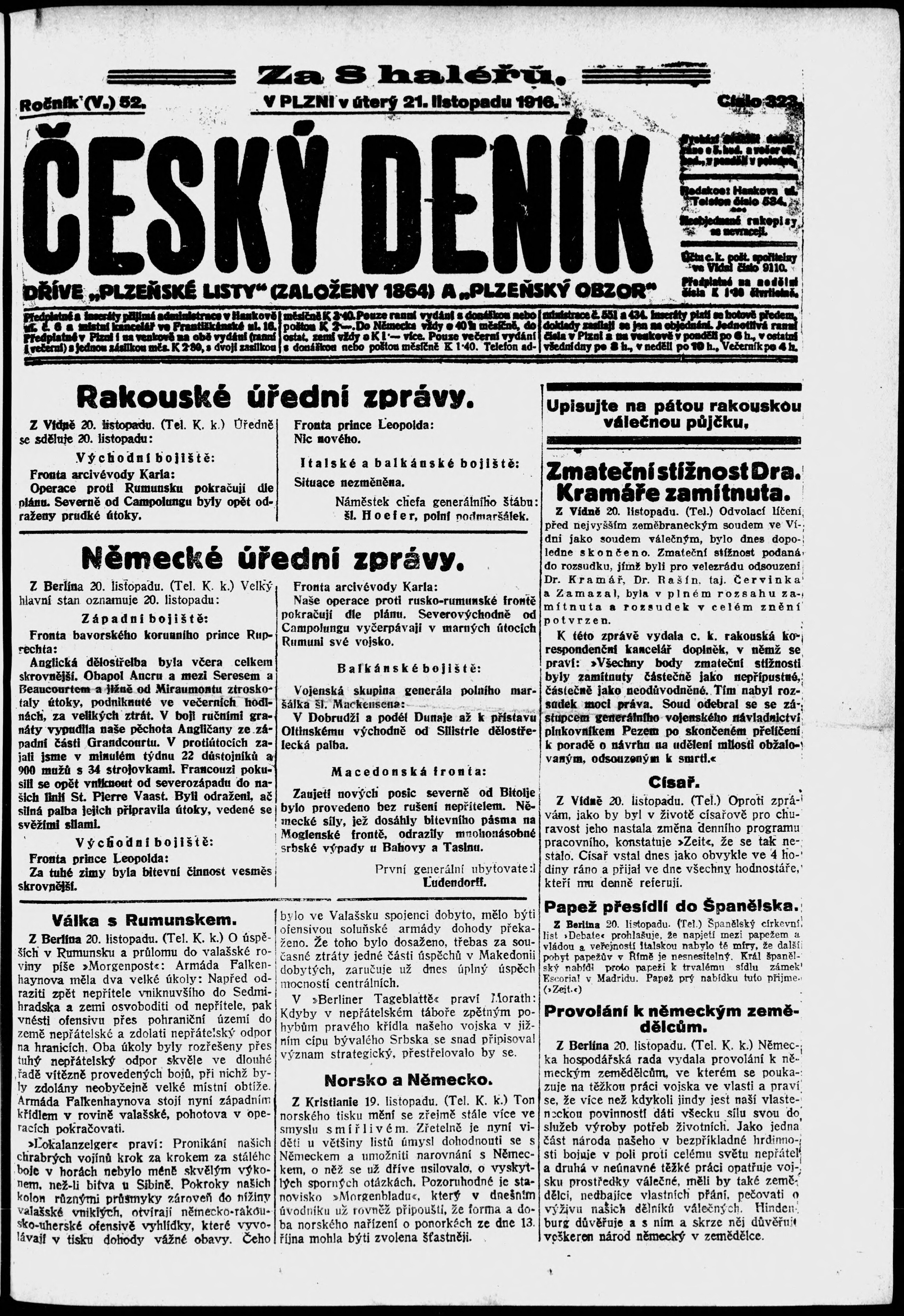* Datum vydání výtisku: 21.11.1916 Číslo výtisku: 323