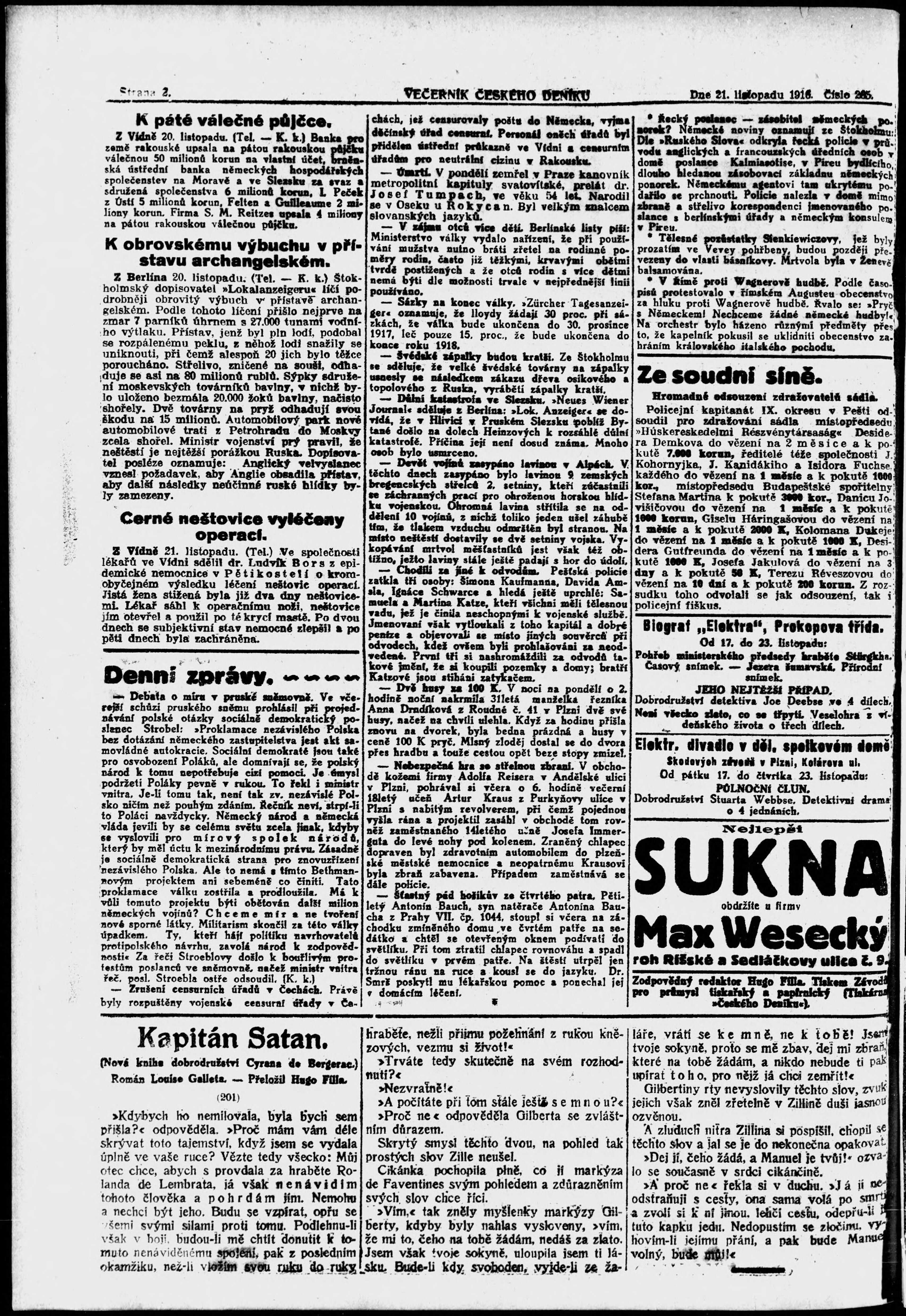 * Datum vydání výtisku: 21.11.1916 Číslo výtisku: 265 Poznámky k výtisku: večerní vydání;