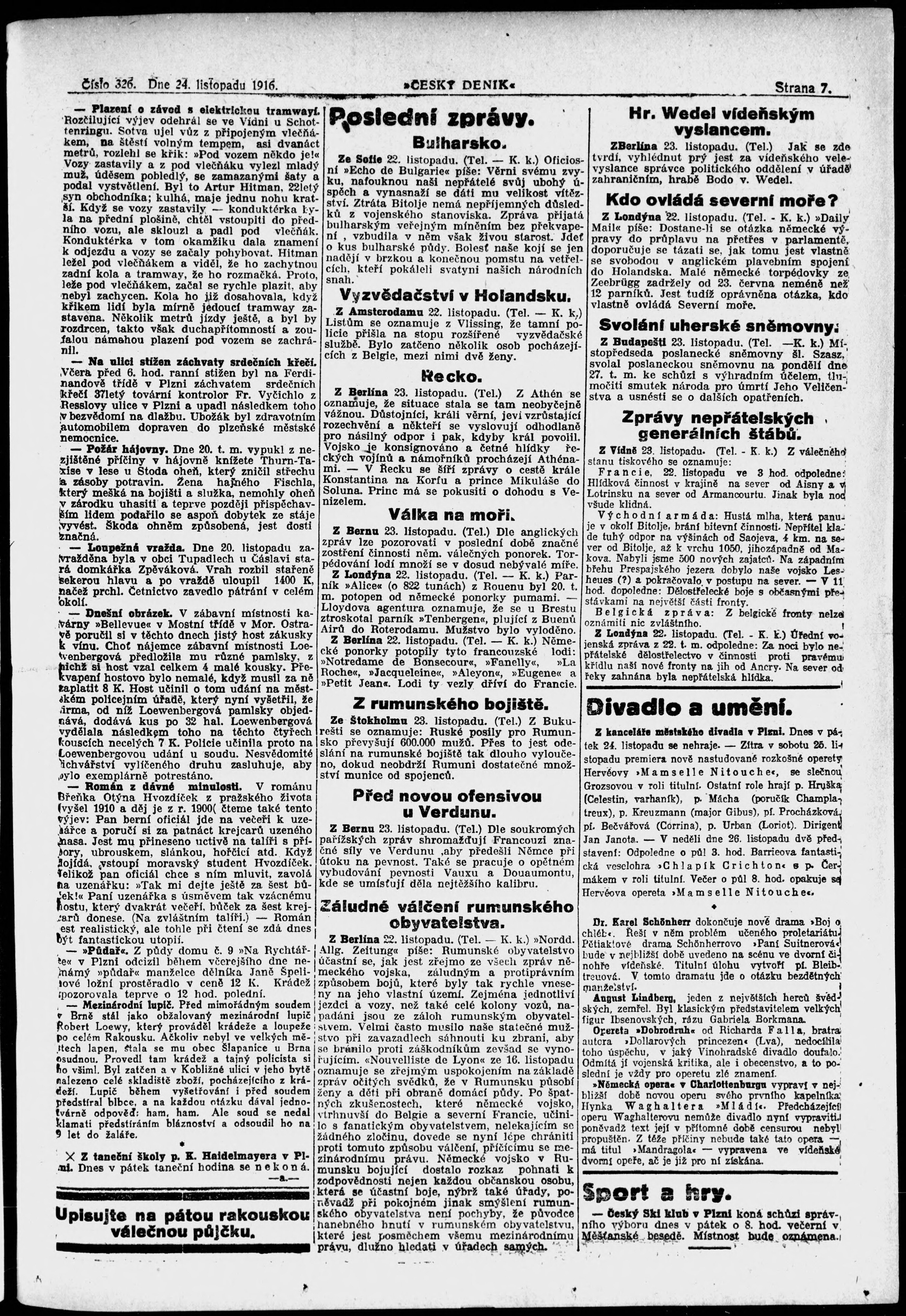 * Datum vydání výtisku: 24.11.1916 Číslo výtisku: 326