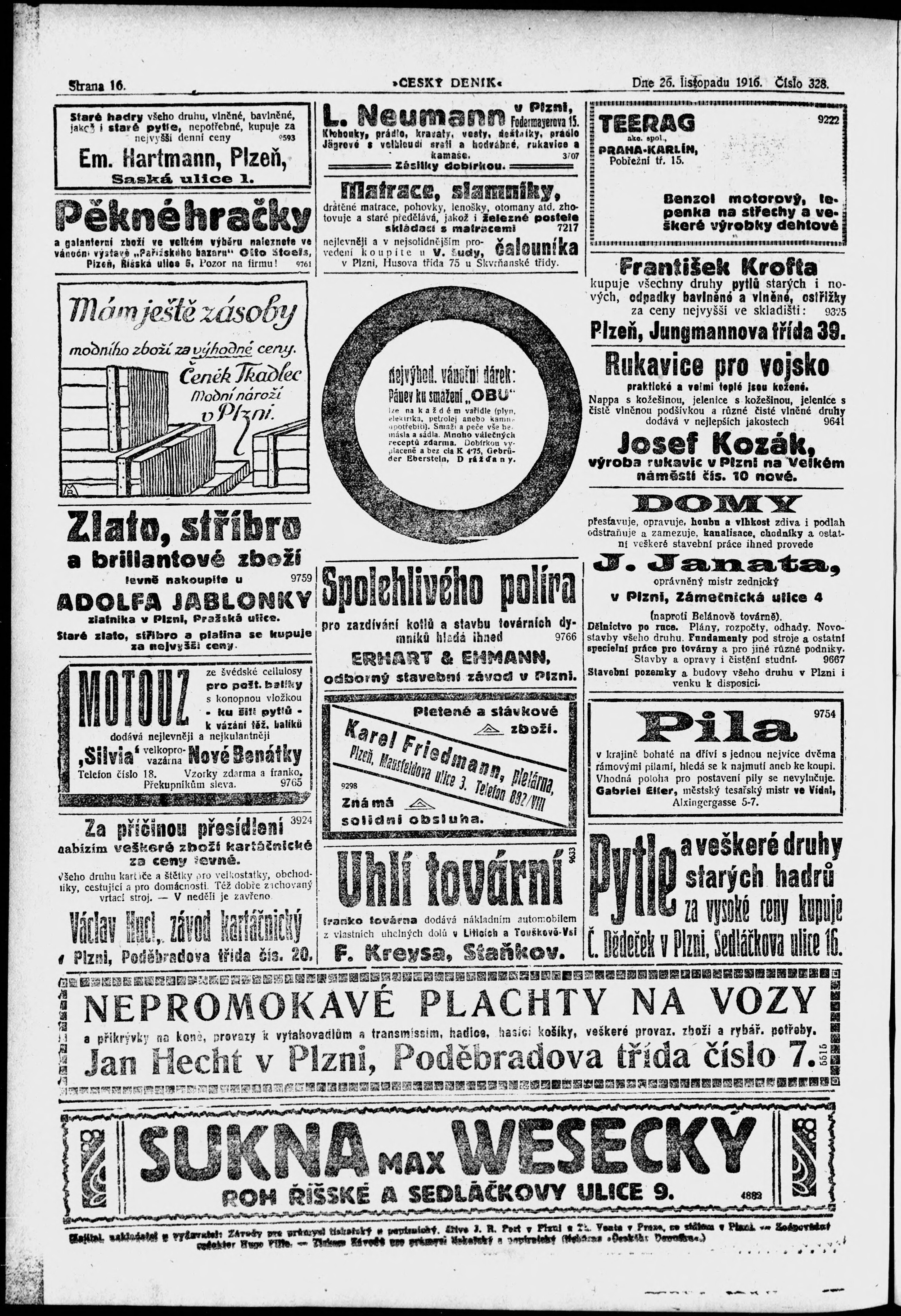 * Datum vydání výtisku: 26.11.1916 Číslo výtisku: 328