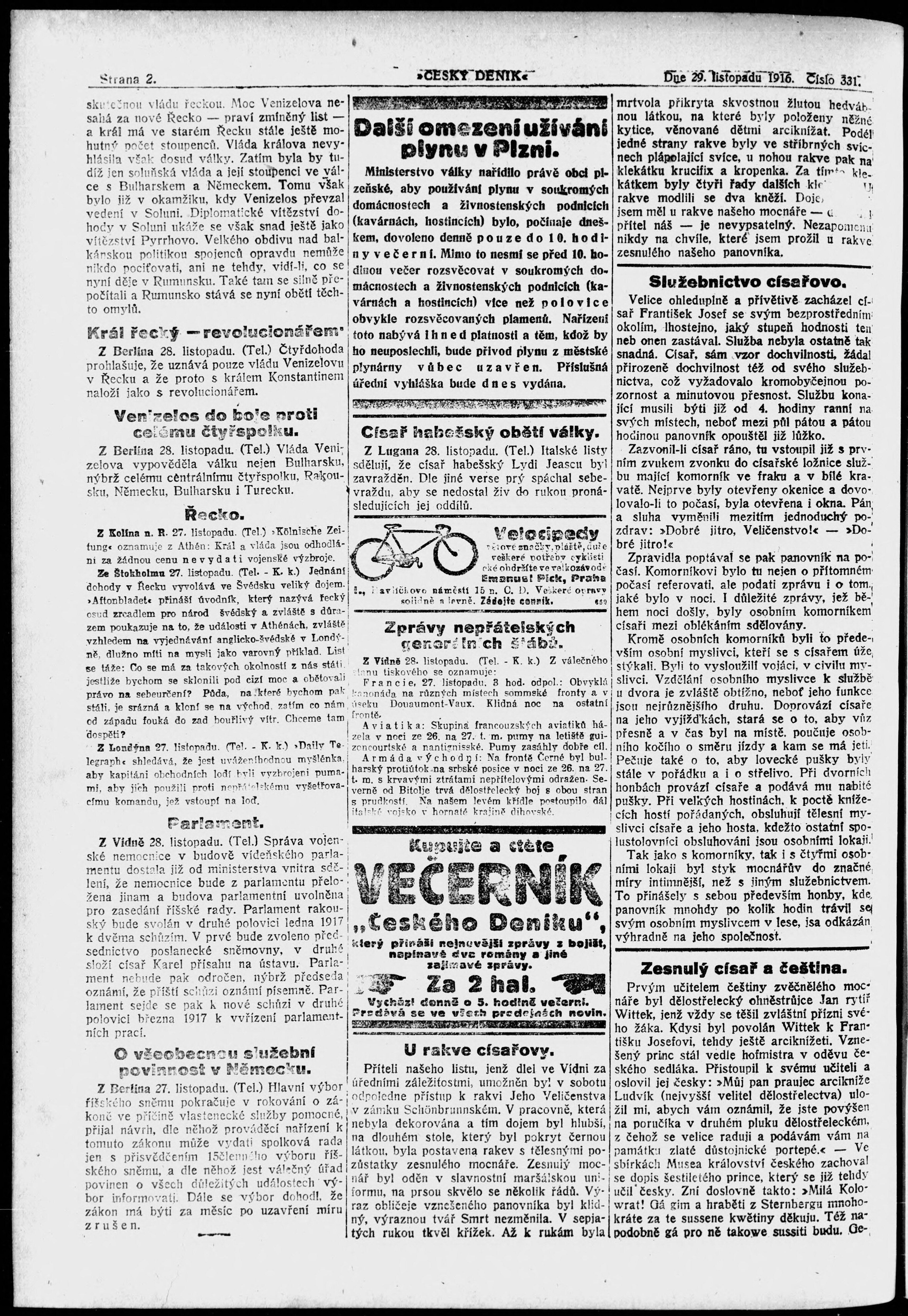 * Datum vydání výtisku: 29.11.1916 Číslo výtisku: 331