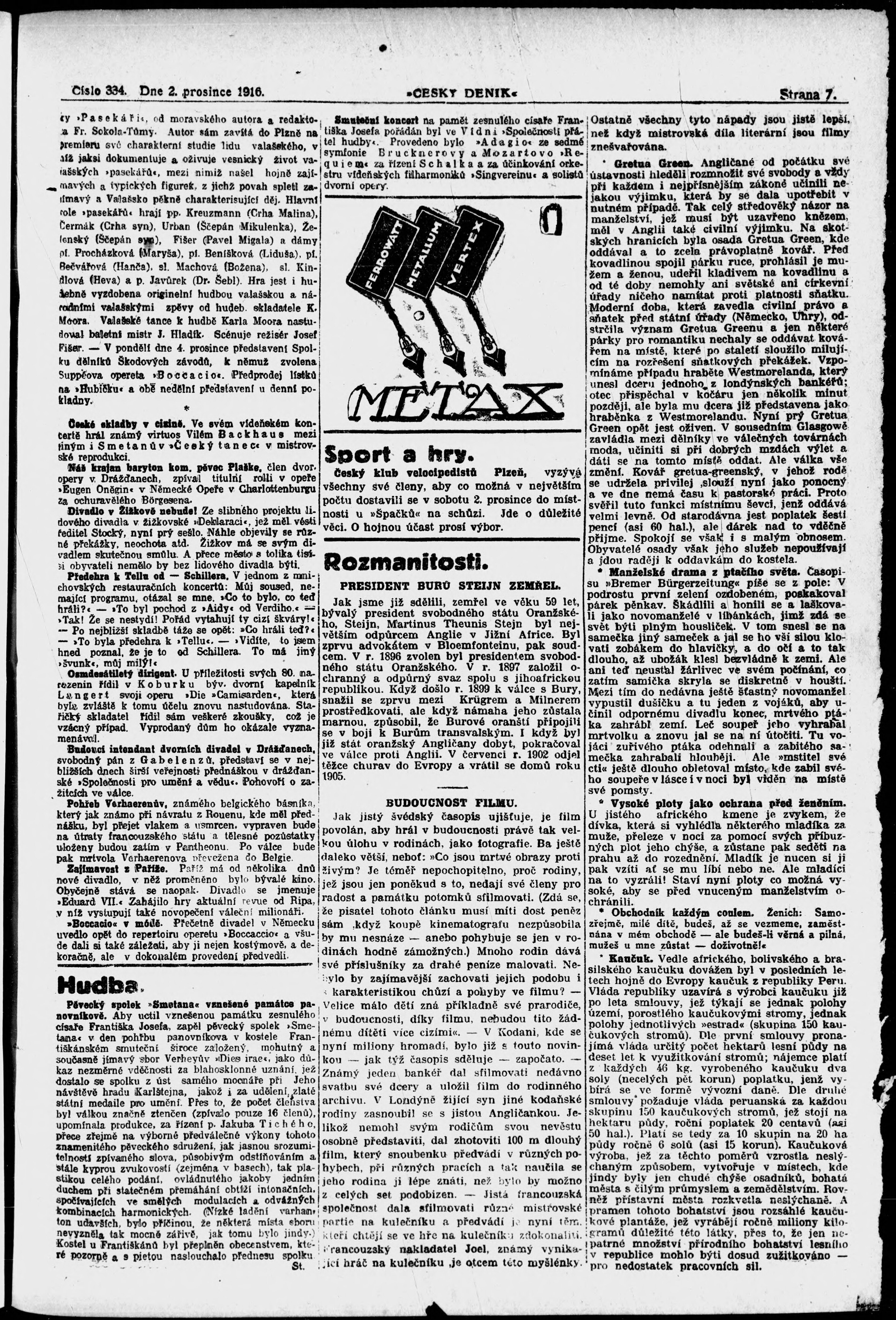 * Datum vydání výtisku: 2.12.1916 Číslo výtisku: 334