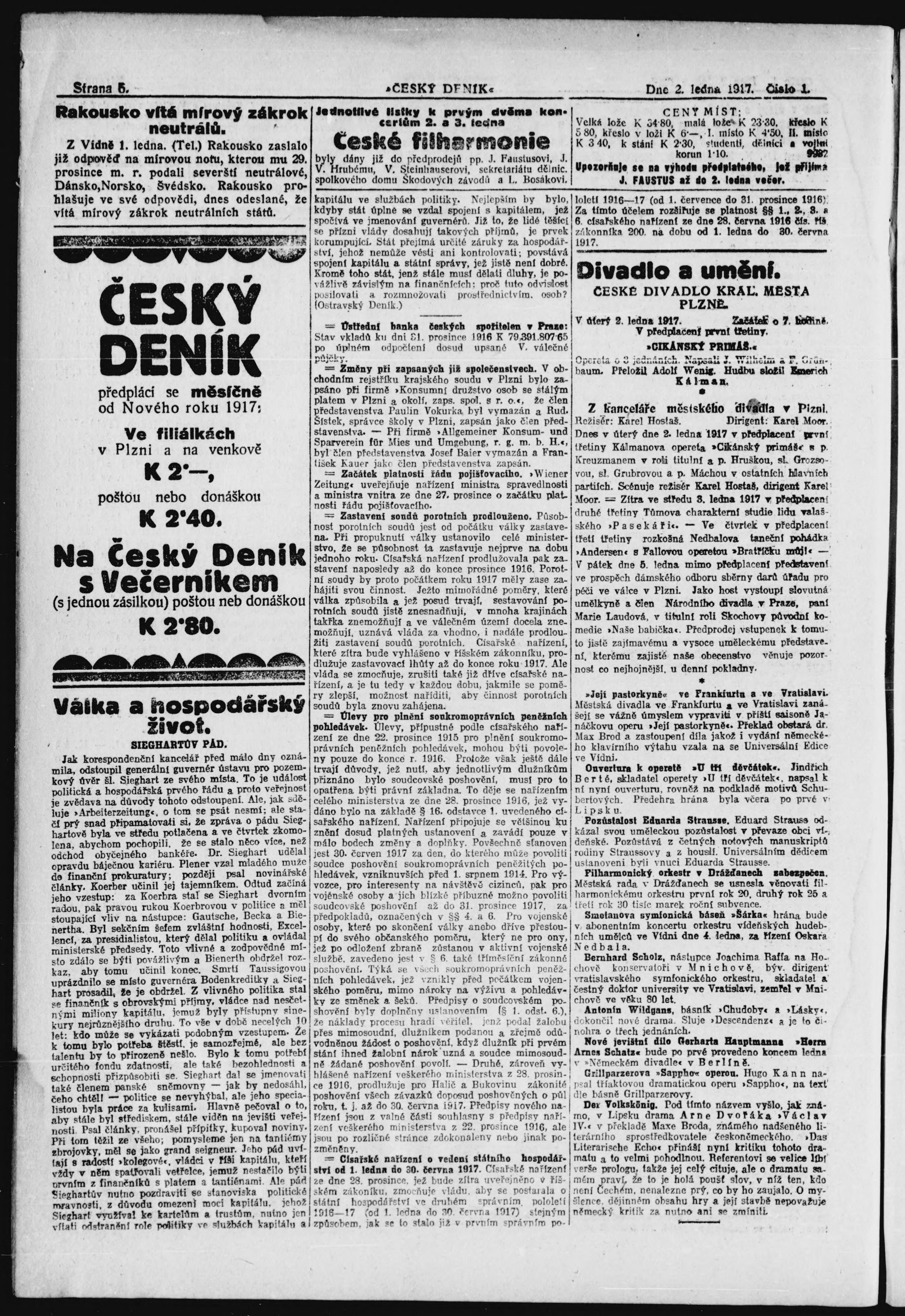 * Datum vydání výtisku: 2.1.1917 Číslo výtisku: 1