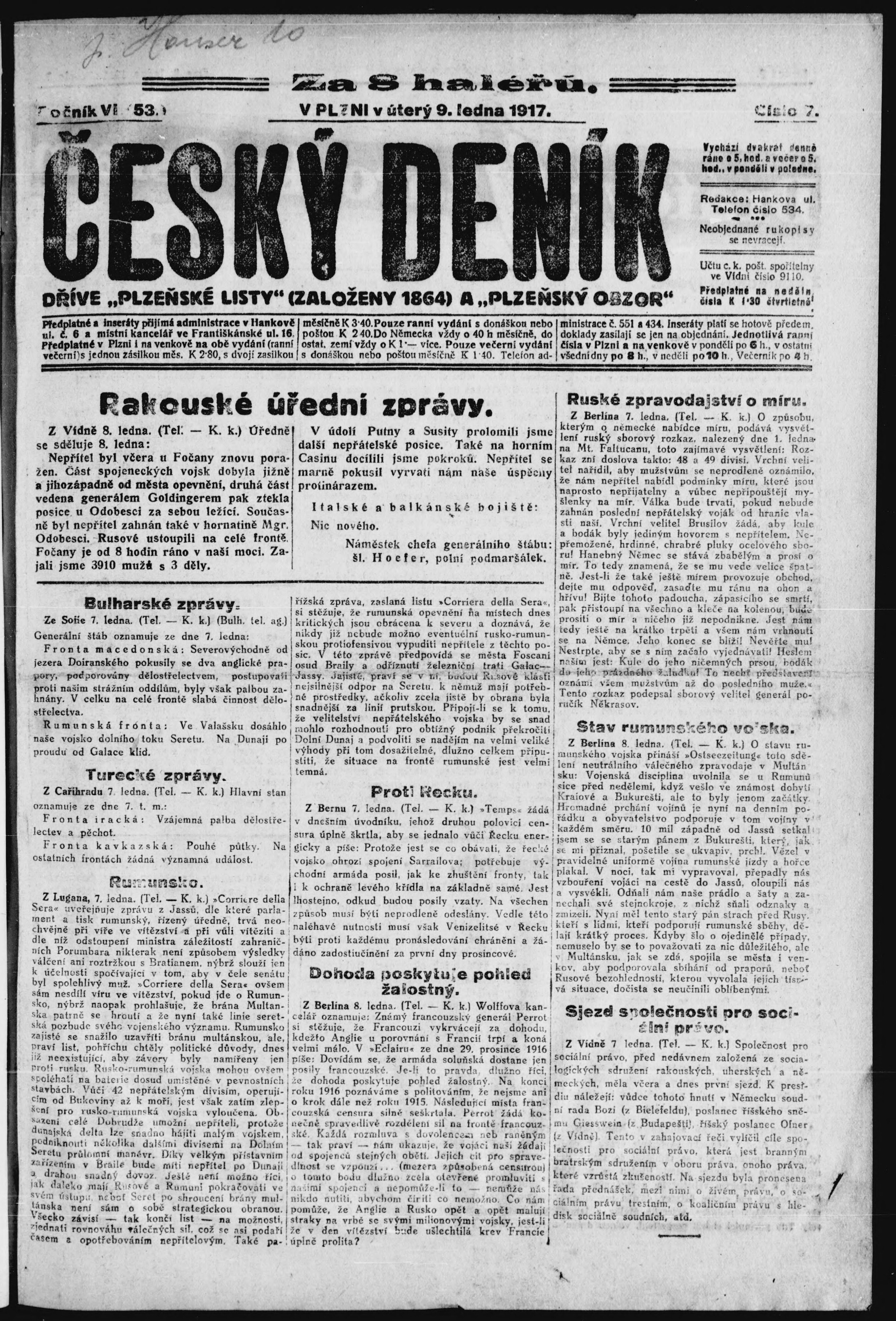 * Datum vydání výtisku: 9.1.1917 Číslo výtisku: 7