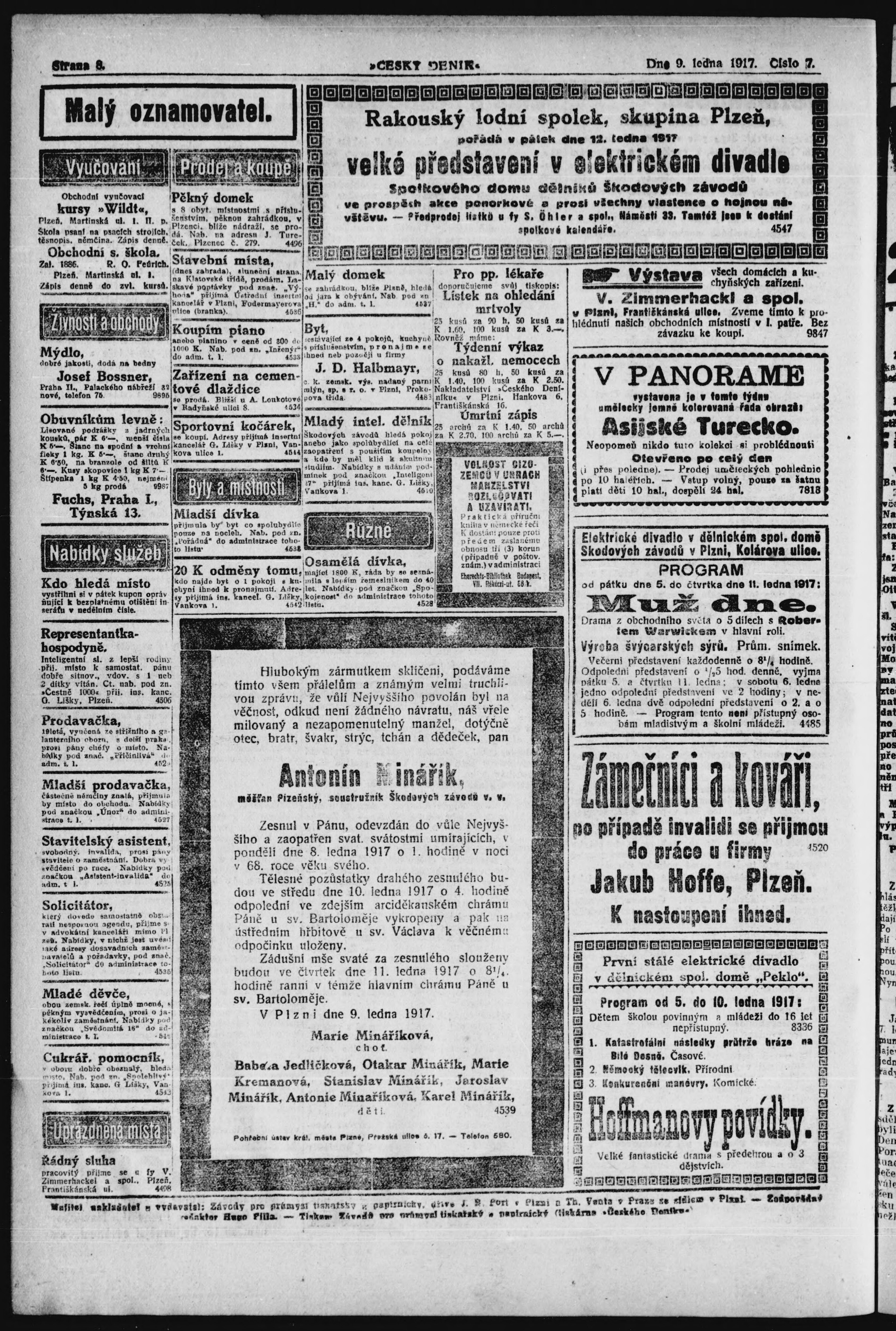 * Datum vydání výtisku: 9.1.1917 Číslo výtisku: 7