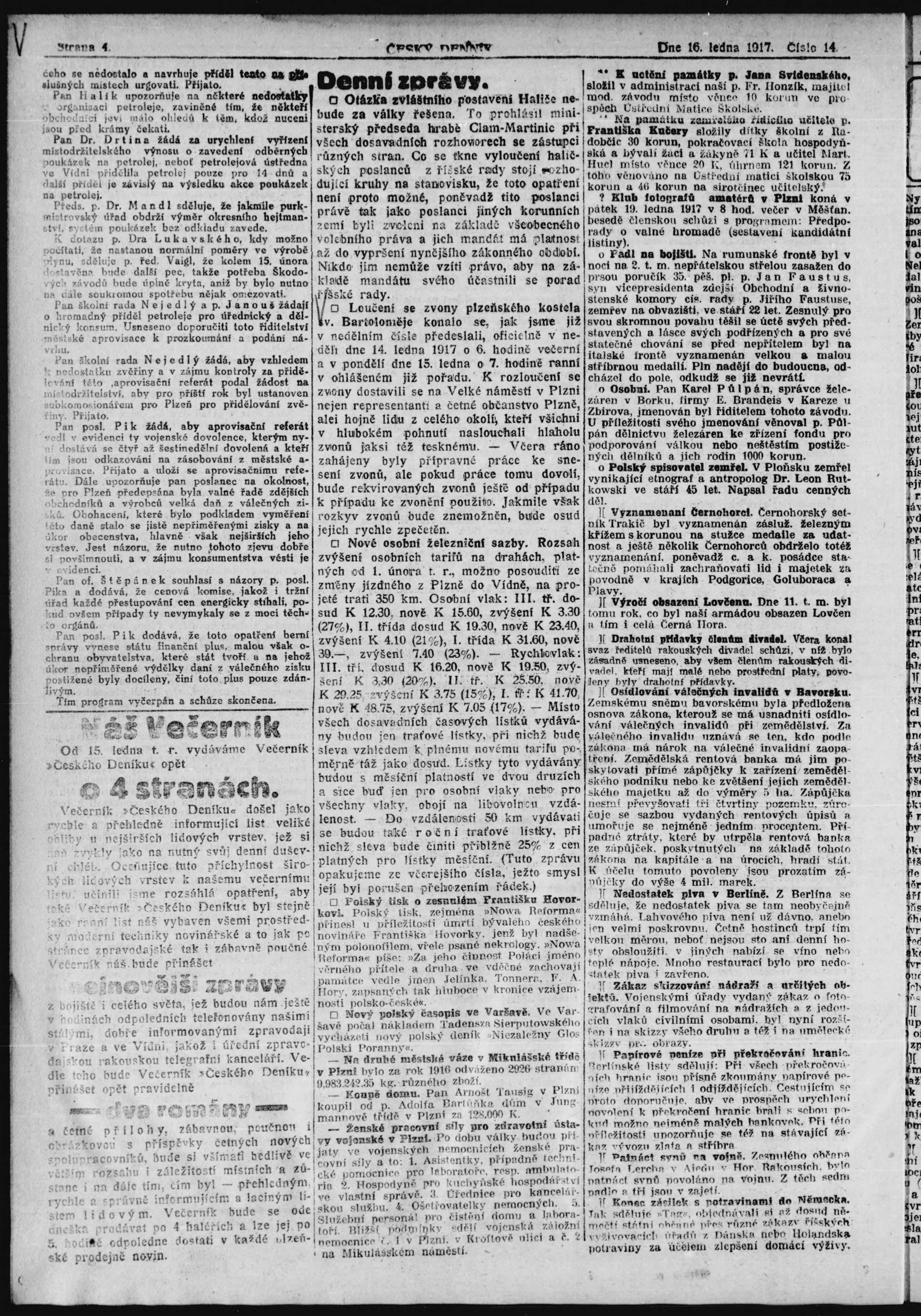 * Datum vydání výtisku: 16.1.1917 Číslo výtisku: 14
