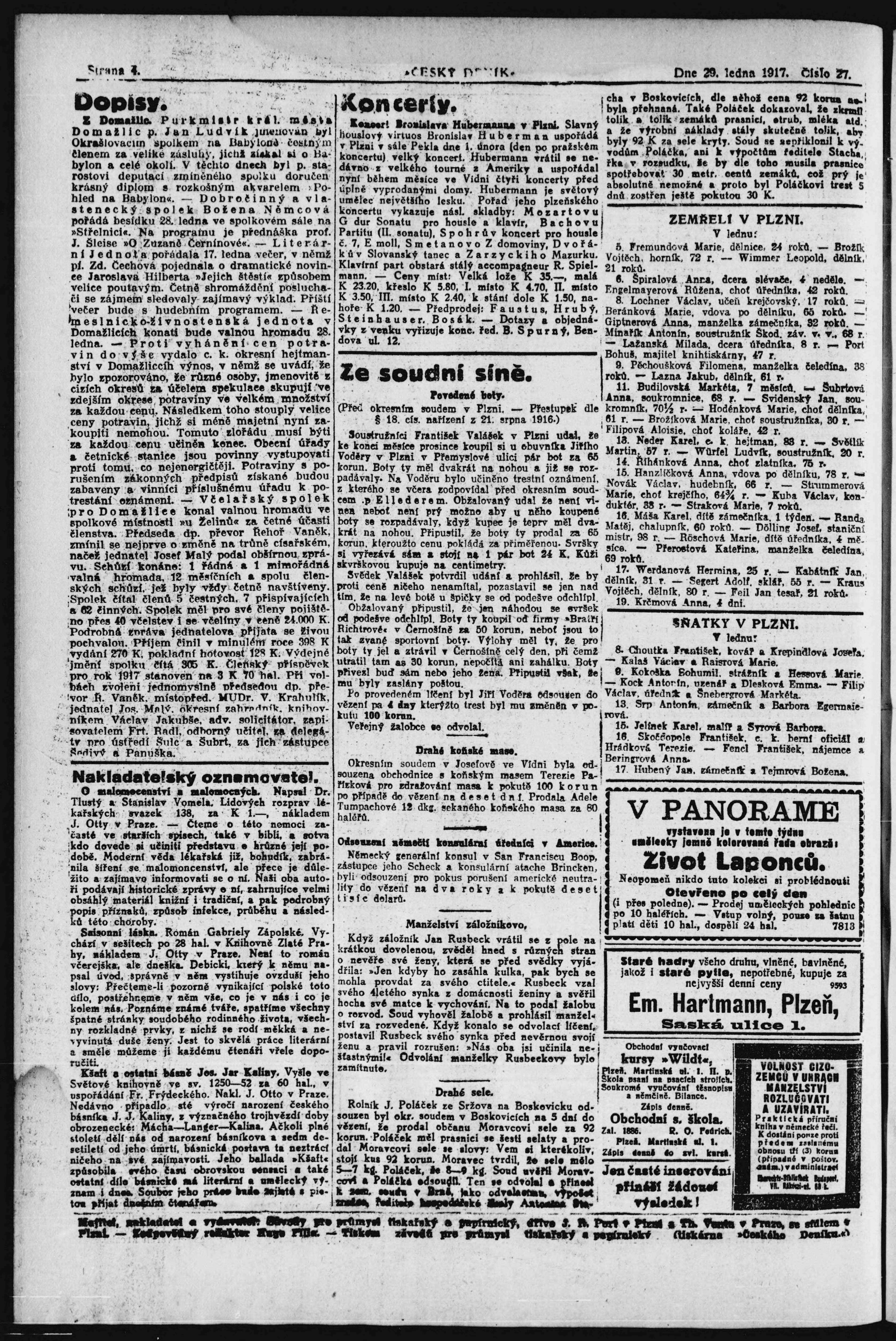 * Datum vydání výtisku: 29.1.1917 Číslo výtisku: 27