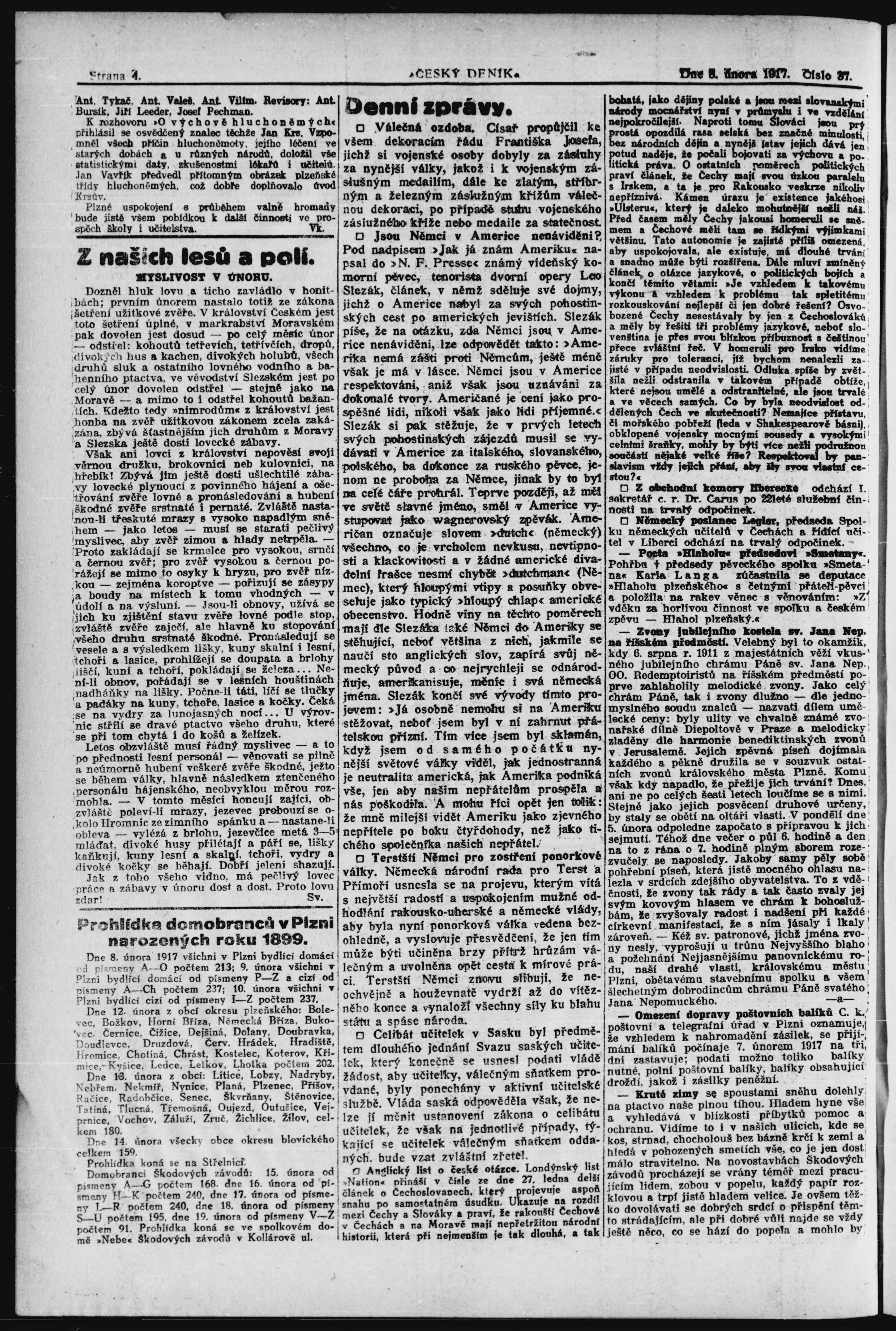 * Datum vydání výtisku: 8.2.1917 Číslo výtisku: 37