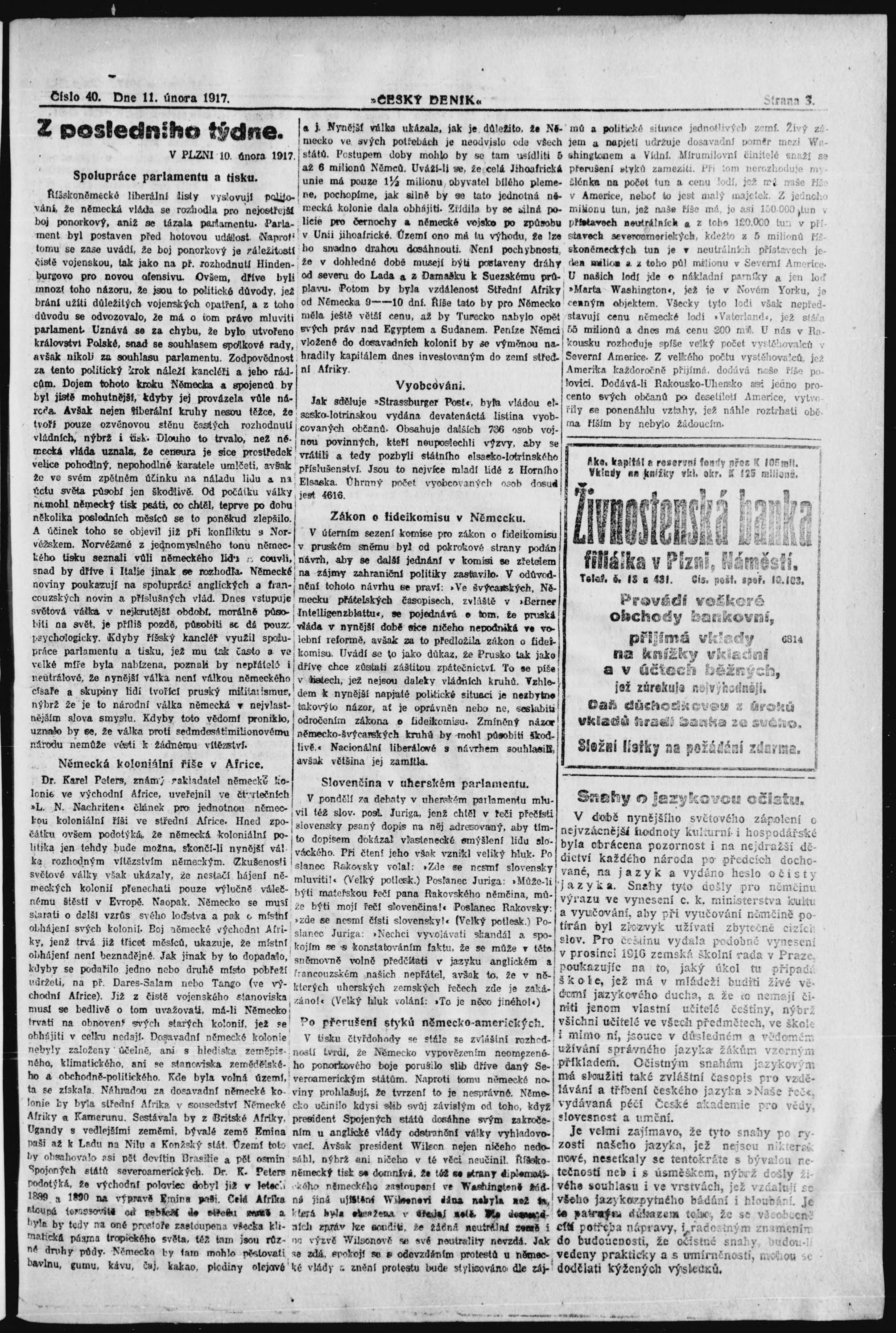 * Datum vydání výtisku: 11.2.1917 Číslo výtisku: 40