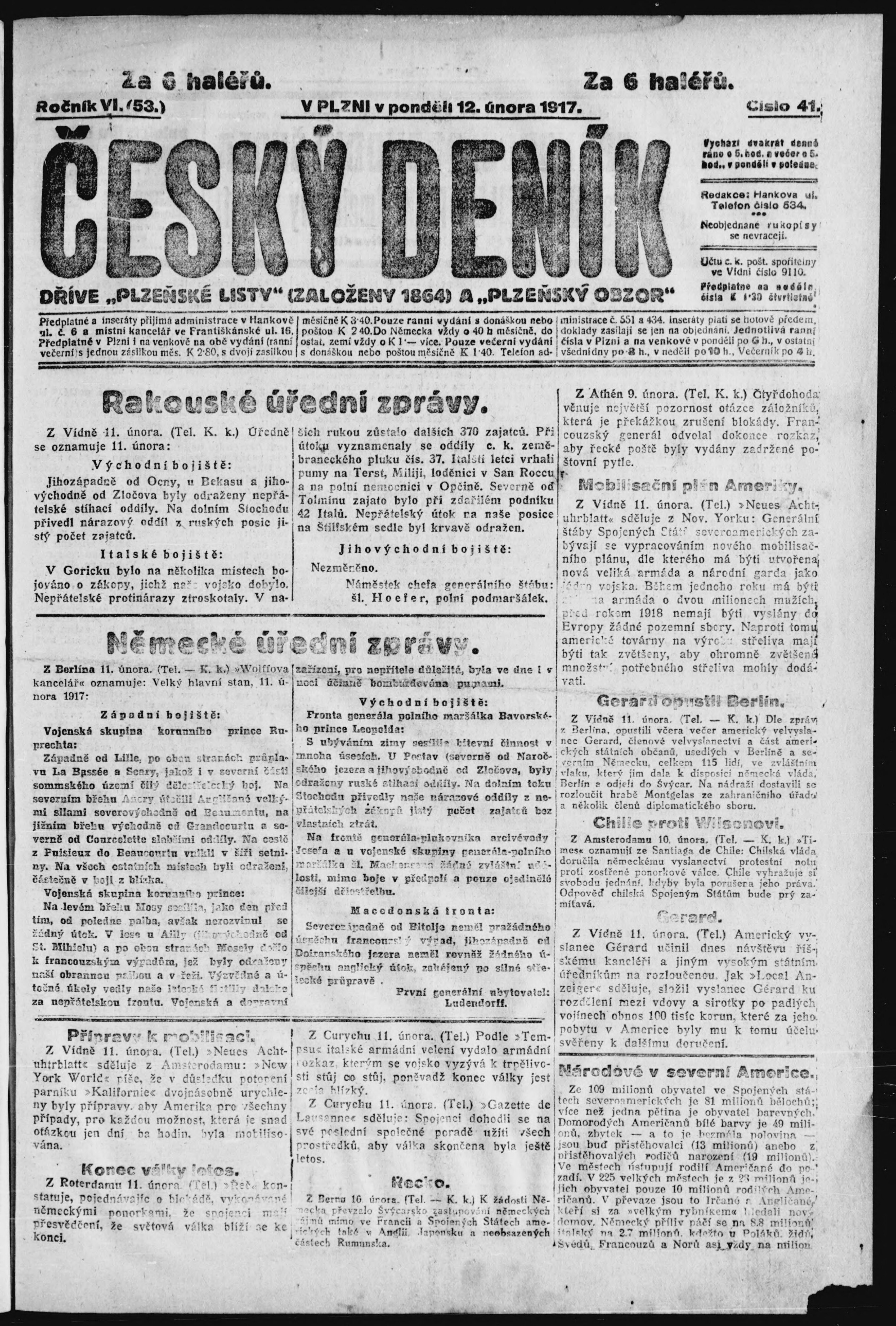 * Datum vydání výtisku: 12.2.1917 Číslo výtisku: 41