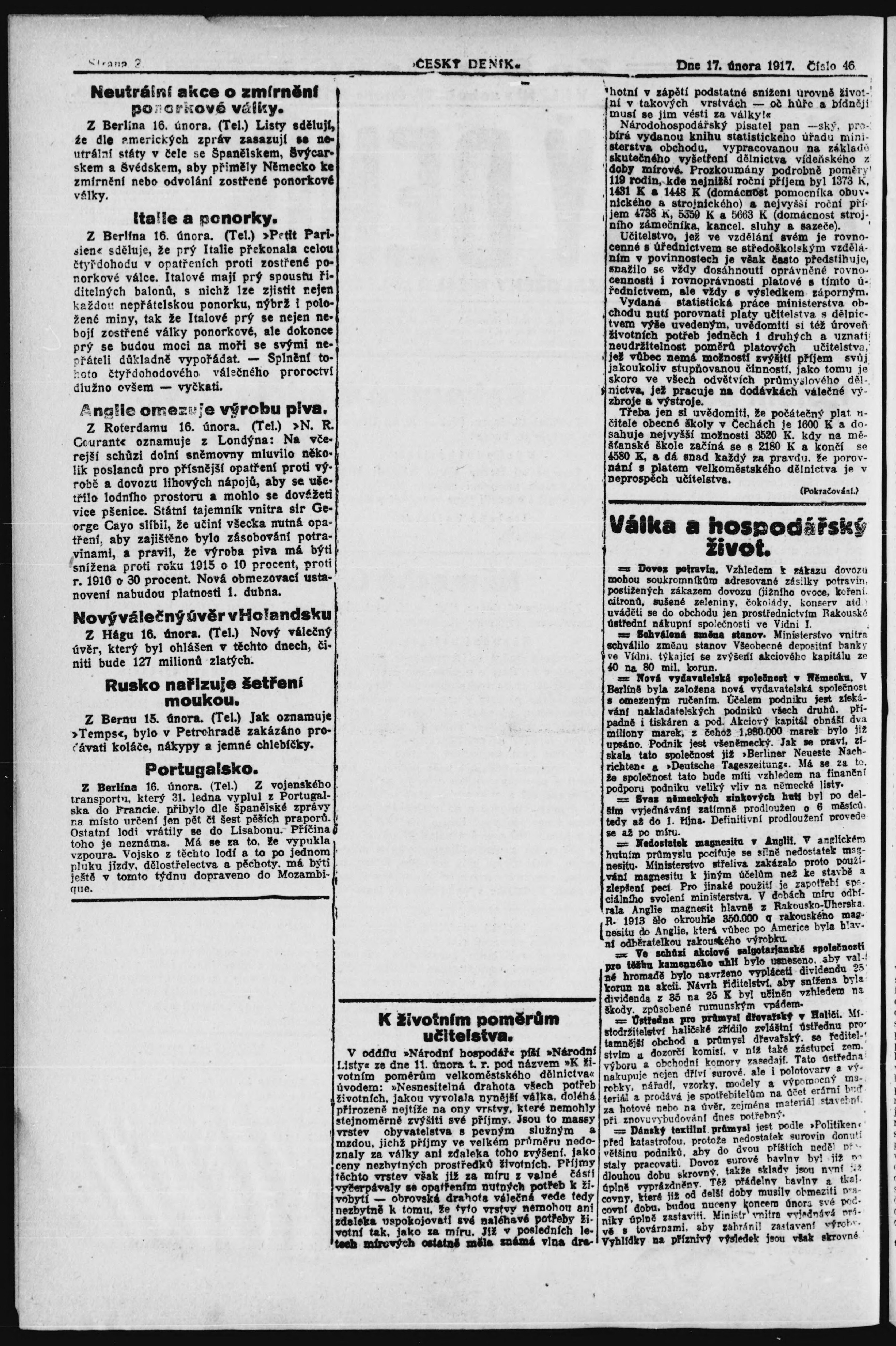 * Datum vydání výtisku: 17.2.1917 Číslo výtisku: 46