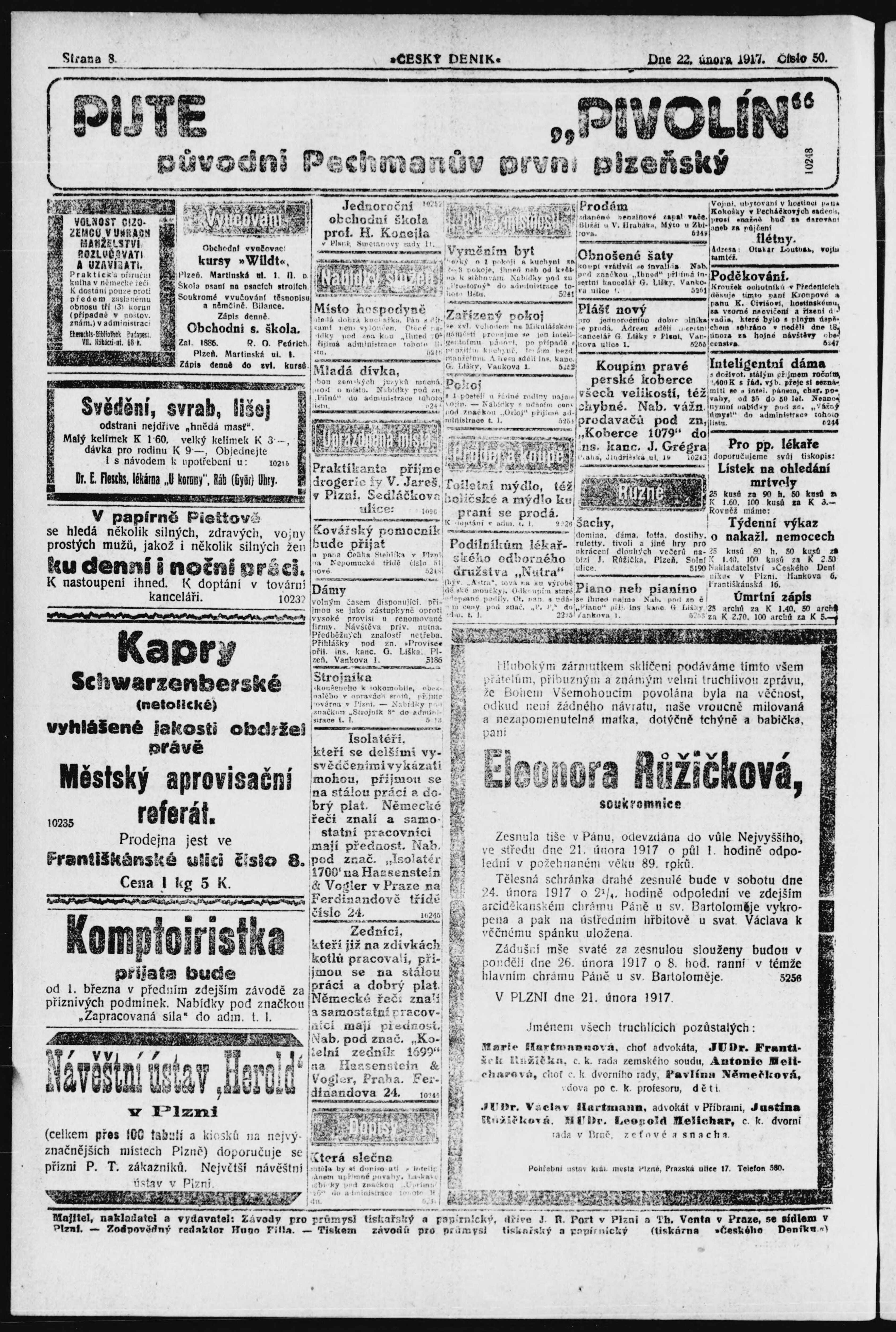 * Datum vydání výtisku: 22.2.1917 Číslo výtisku: 51
