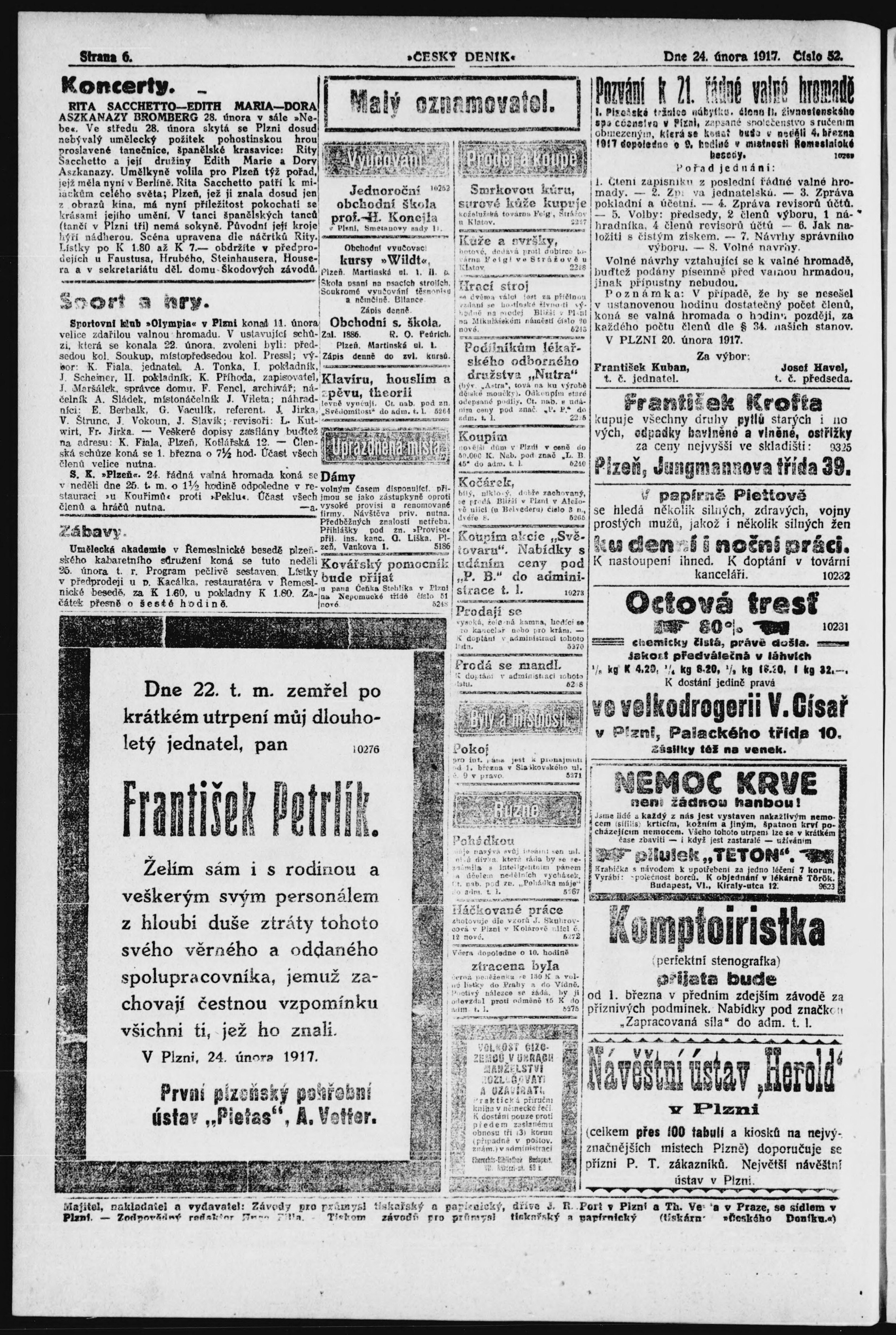 * Datum vydání výtisku: 24.2.1917 Číslo výtisku: 53