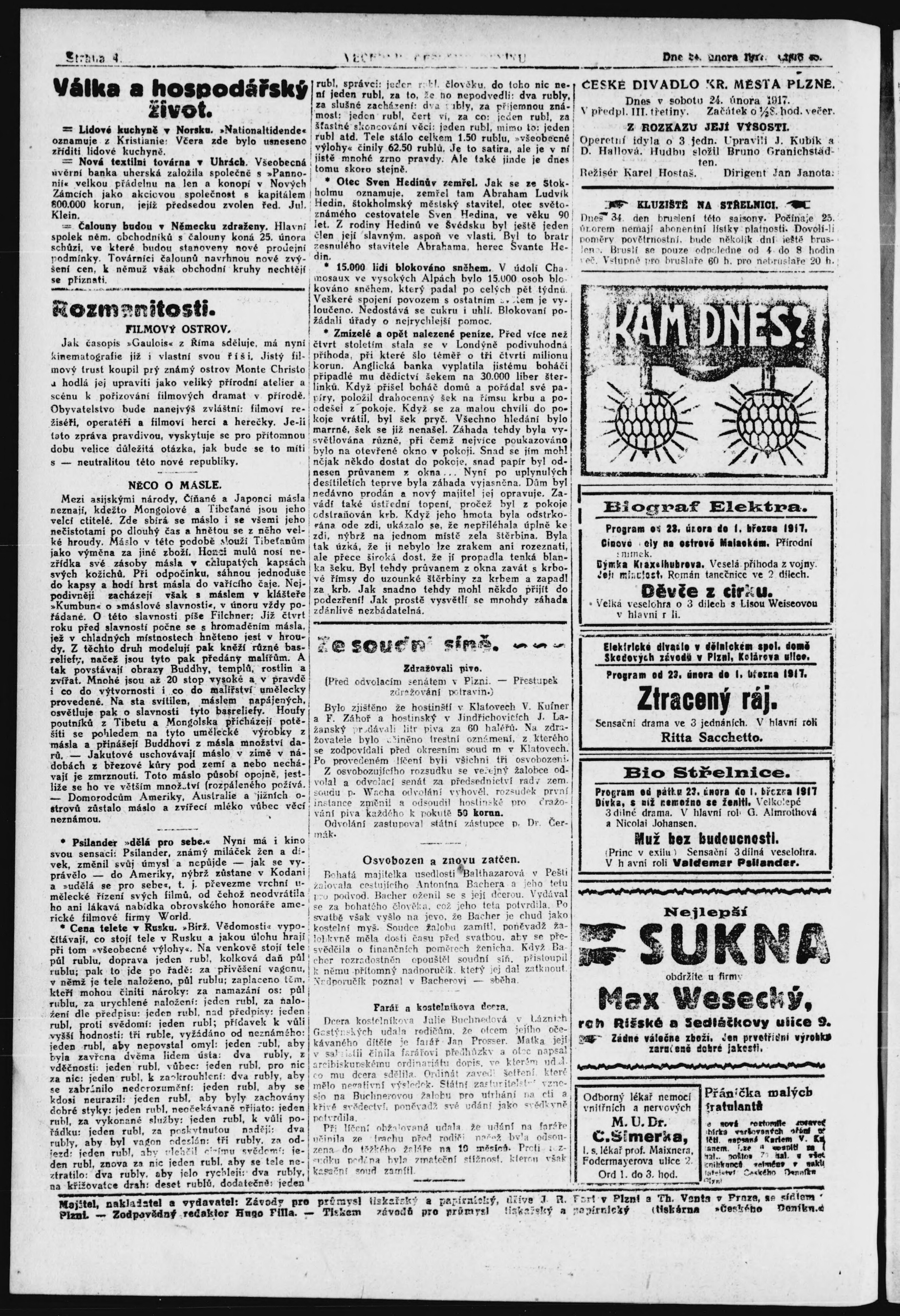 * Datum vydání výtisku: 24.2.1917 Číslo výtisku: 45 Poznámky k výtisku: večerní vydání;
