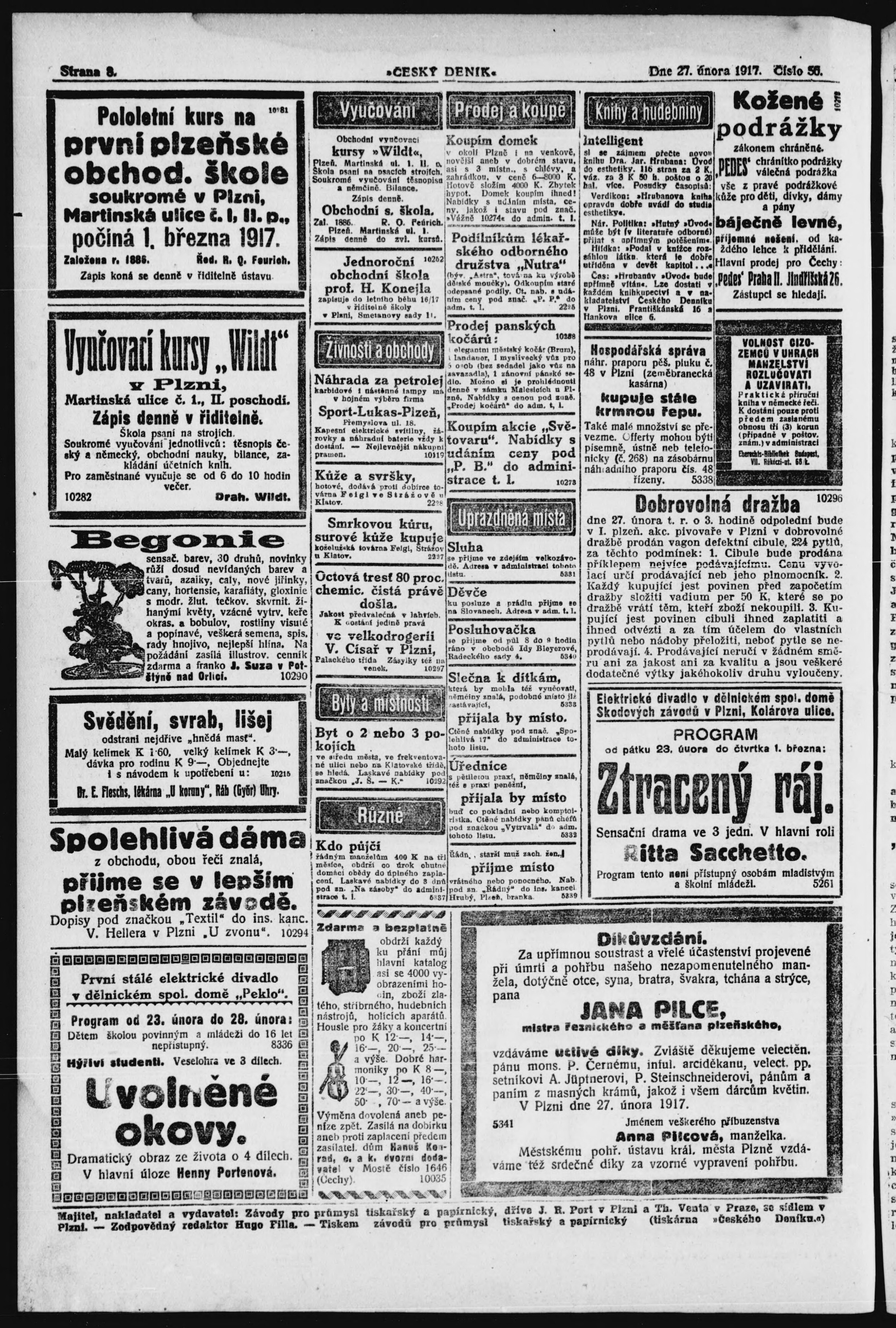* Datum vydání výtisku: 27.2.1917 Číslo výtisku: 56