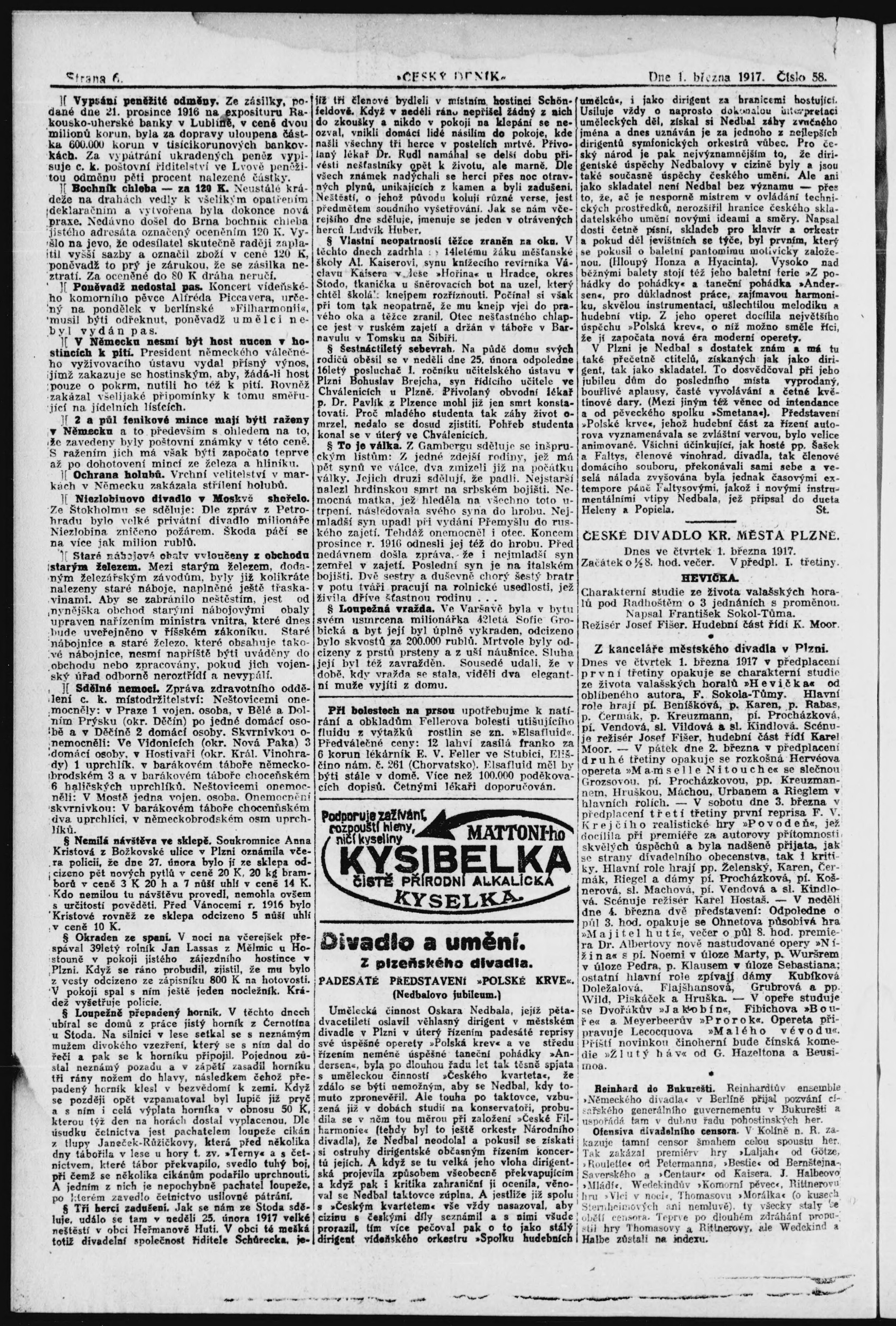 * Datum vydání výtisku: 1.3.1917 Číslo výtisku: 58