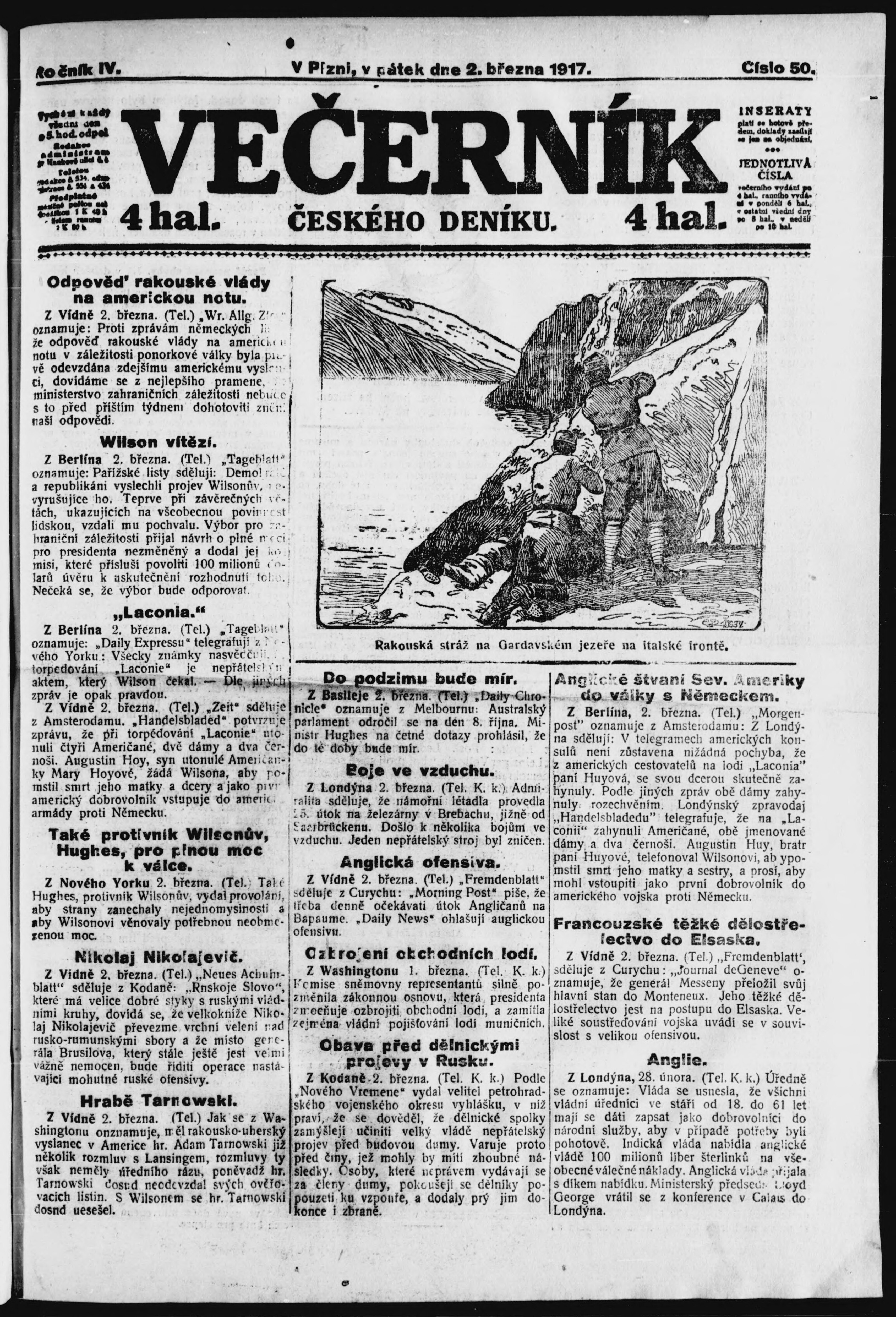 * Datum vydání výtisku: 2.3.1917 Číslo výtisku: 50 Poznámky k výtisku: večerní vydání;