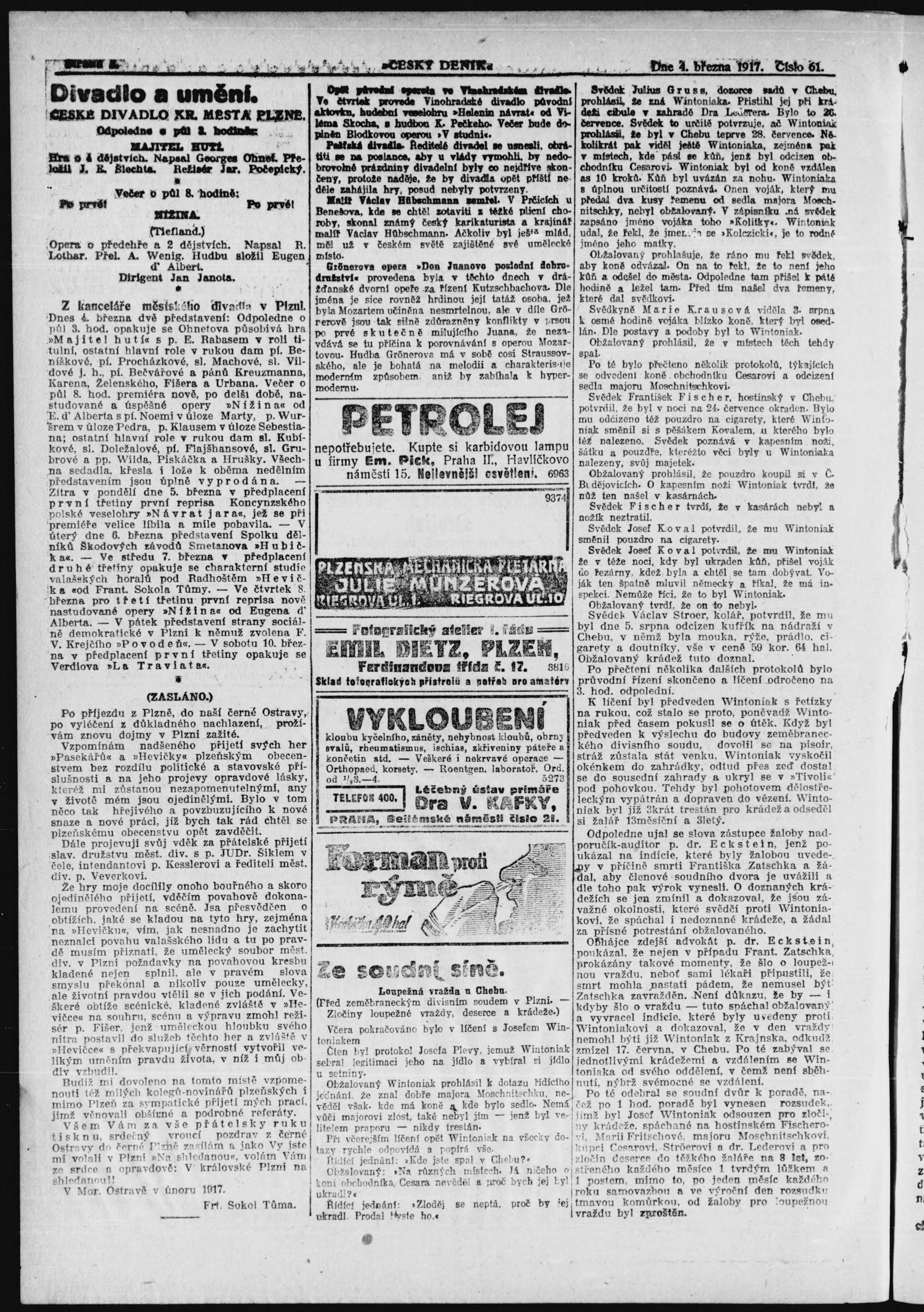 * Datum vydání výtisku: 4.3.1917 Číslo výtisku: 61