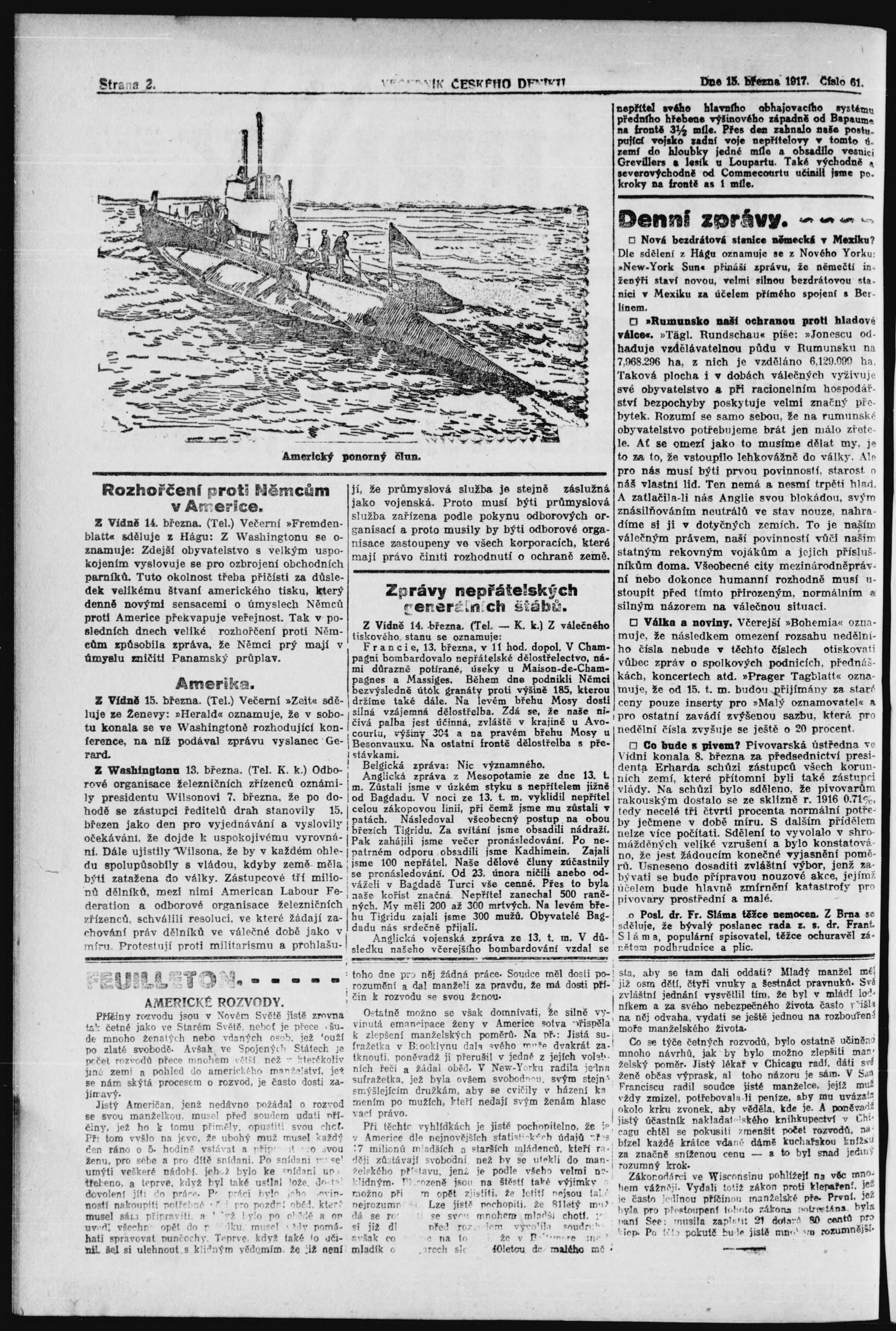 * Datum vydání výtisku: 15.3.1917 Číslo výtisku: 61 Poznámky k výtisku: večerní vydání;