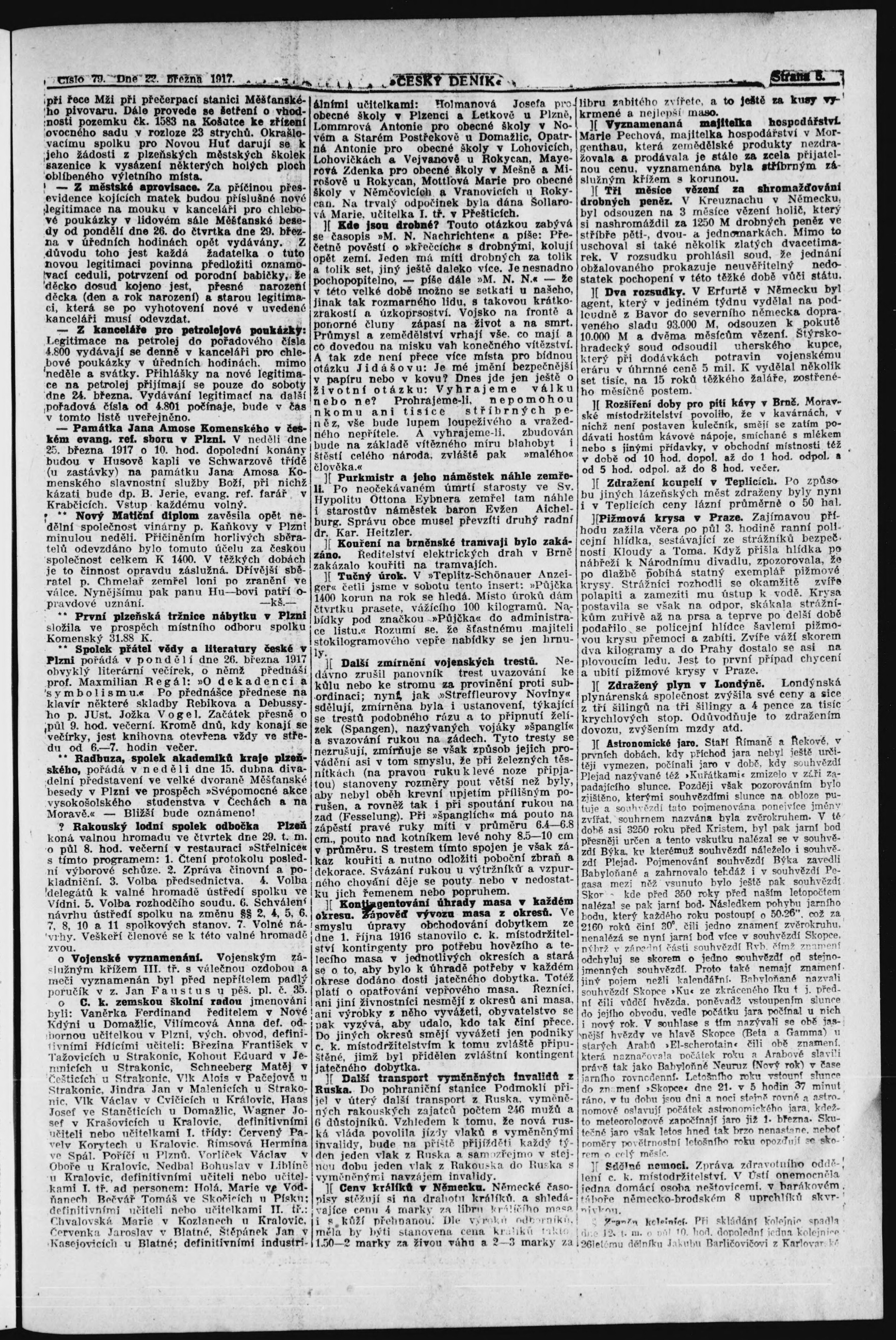 * Datum vydání výtisku: 22.3.1917 Číslo výtisku: 79