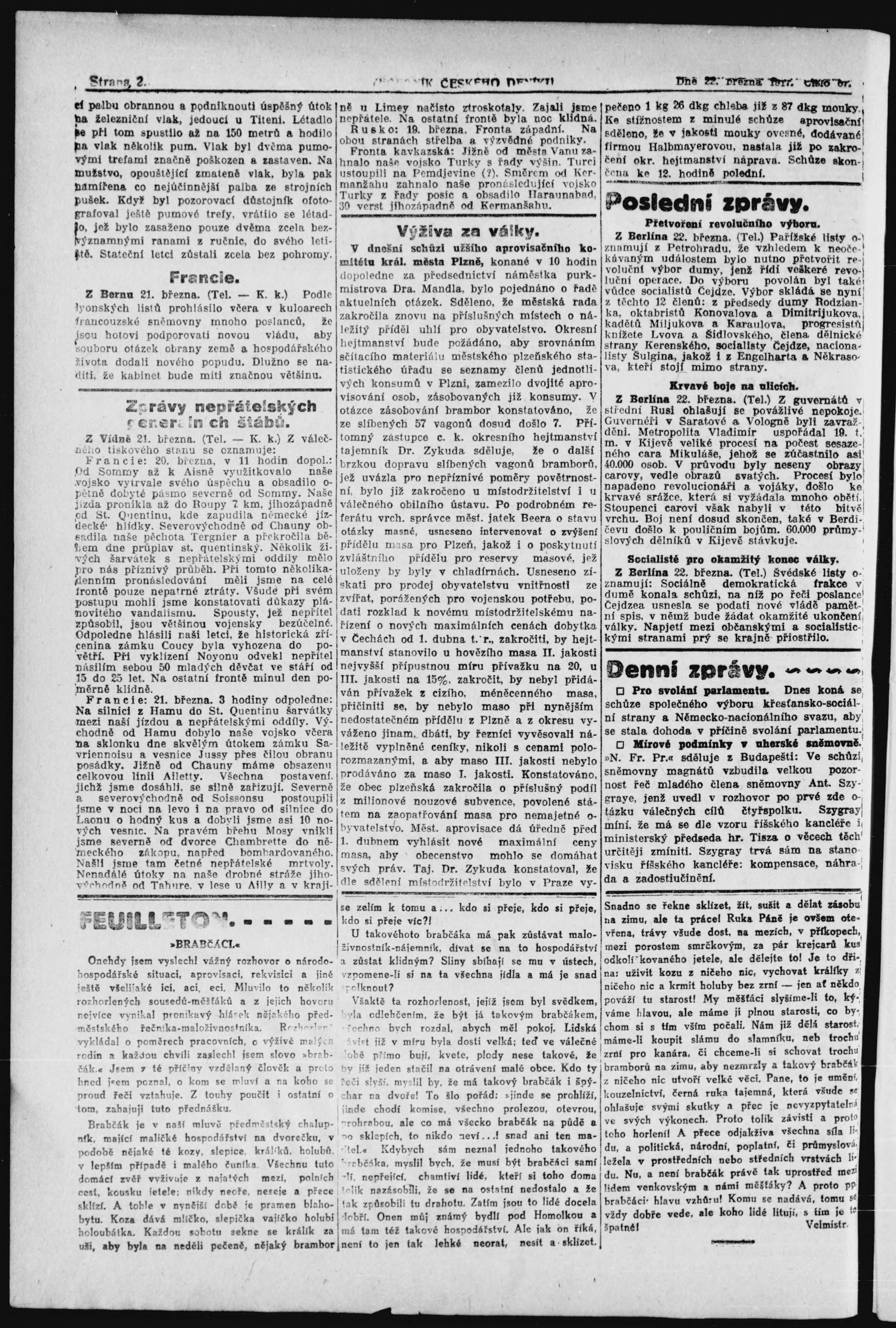 * Datum vydání výtisku: 22.3.1917 Číslo výtisku: 67 Poznámky k výtisku: večerní vydání;