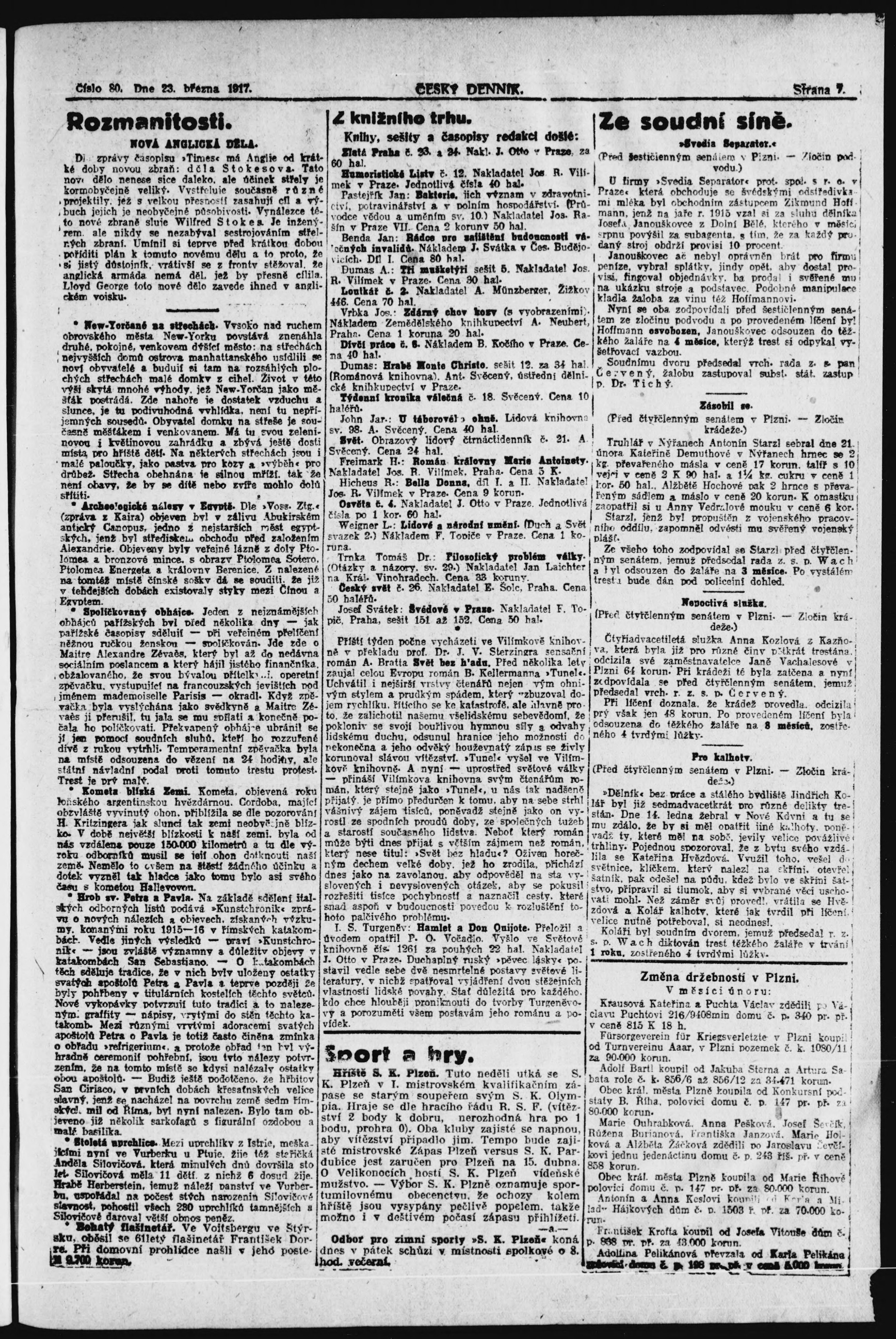 * Datum vydání výtisku: 23.3.1917 Číslo výtisku: 80