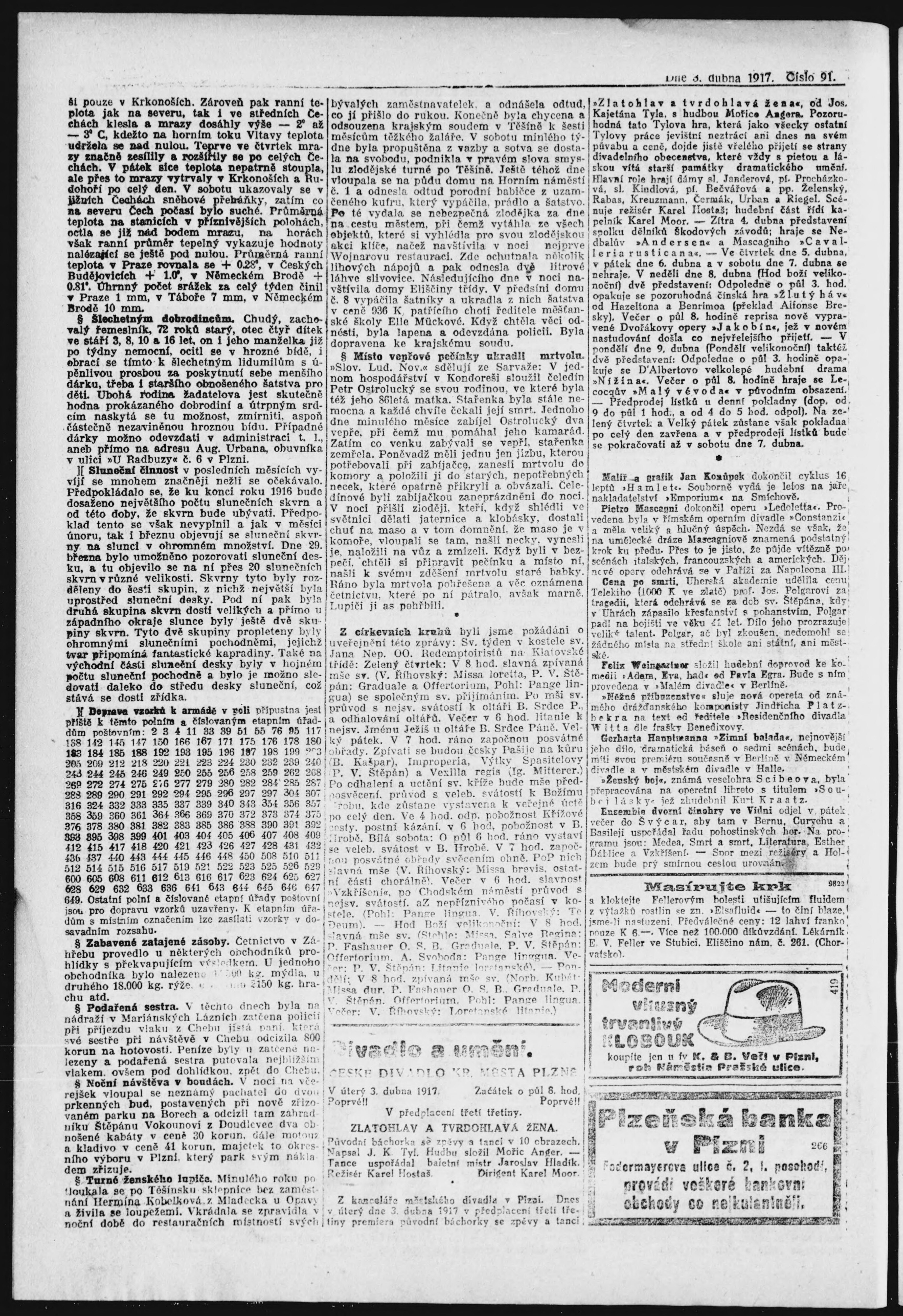 * Datum vydání výtisku: 3.4.1917 Číslo výtisku: 91