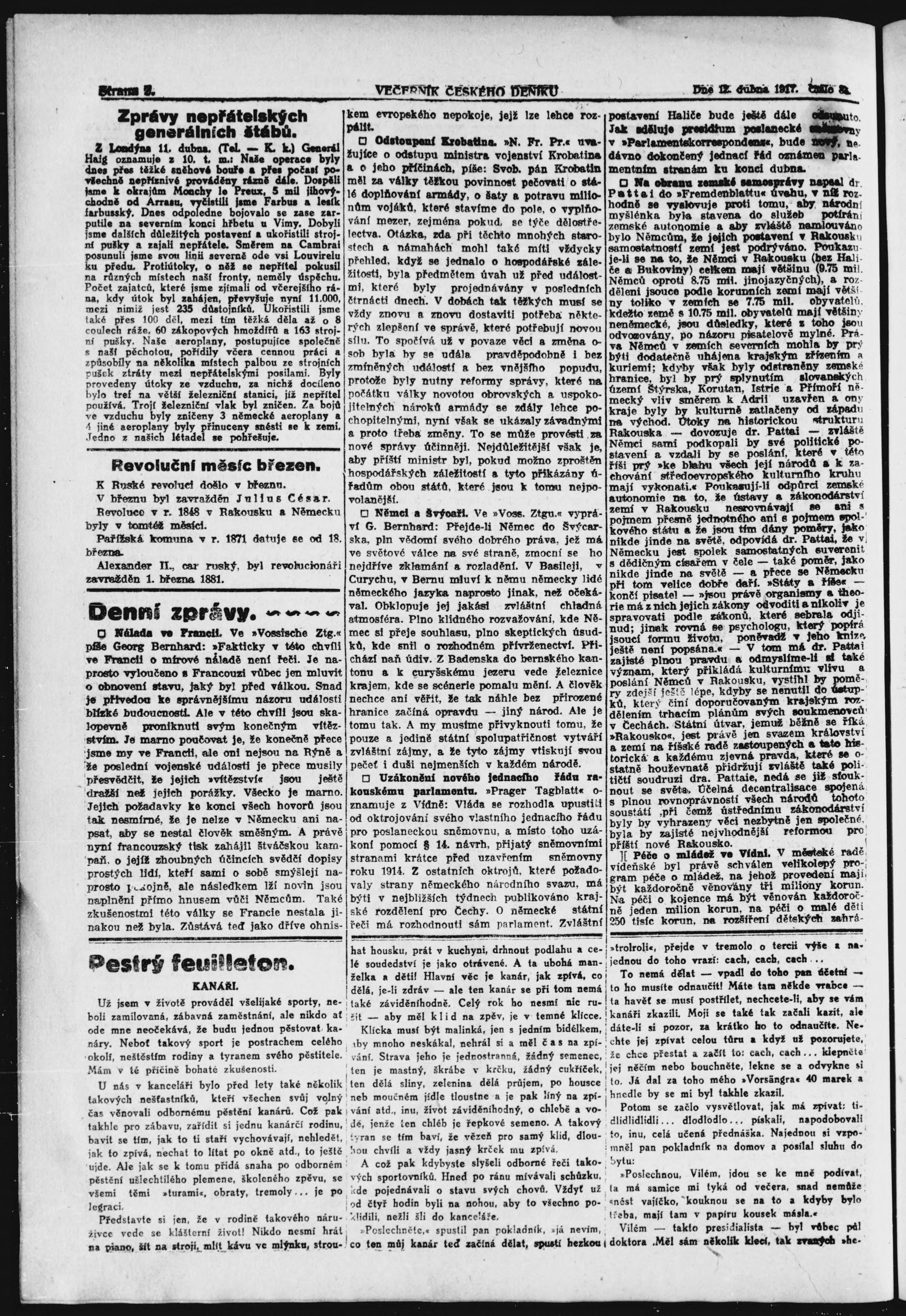 * Datum vydání výtisku: 12.4.1917 Číslo výtisku: 84 Poznámky k výtisku: večerní vydání;