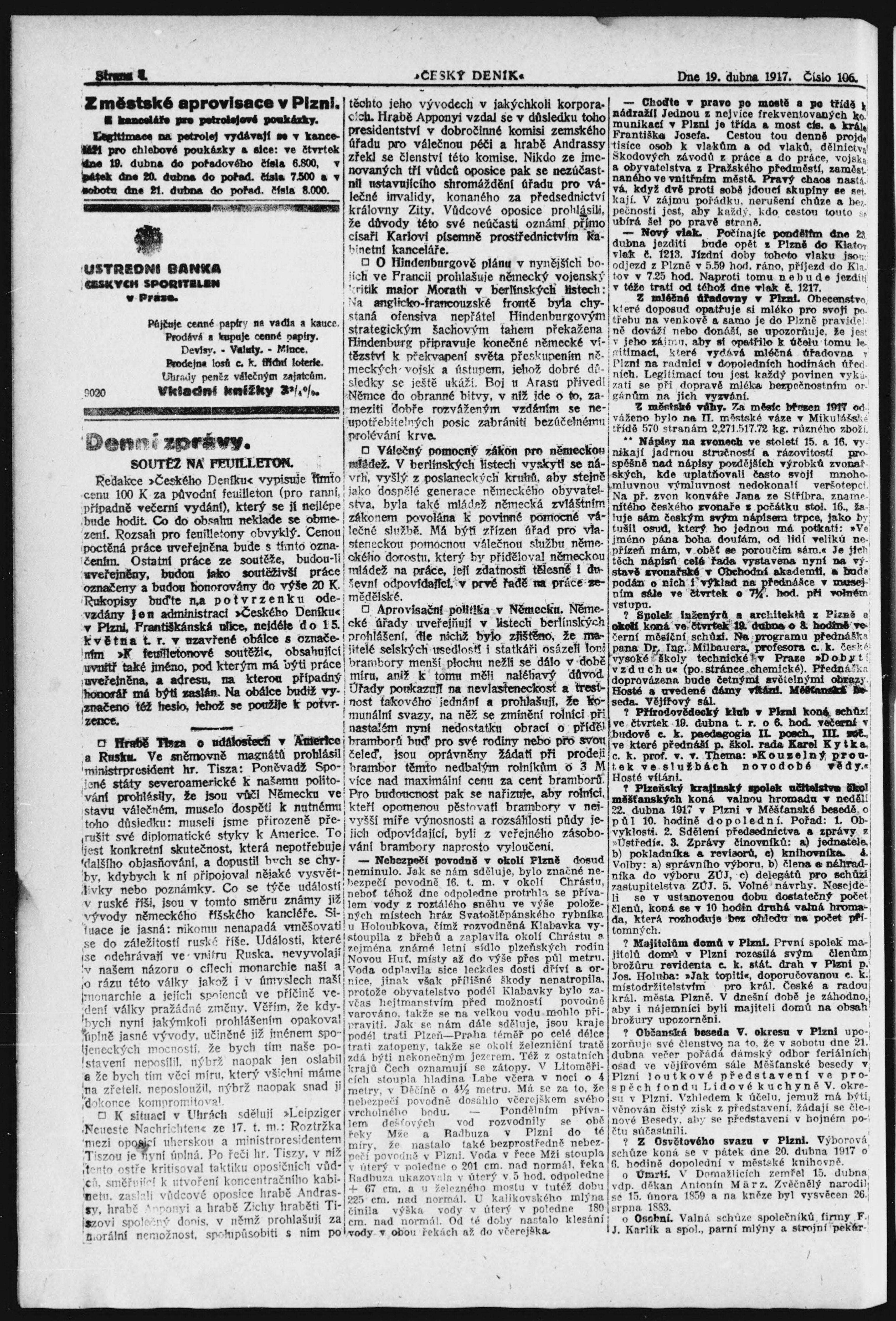 * Datum vydání výtisku: 19.4.1917 Číslo výtisku: 106