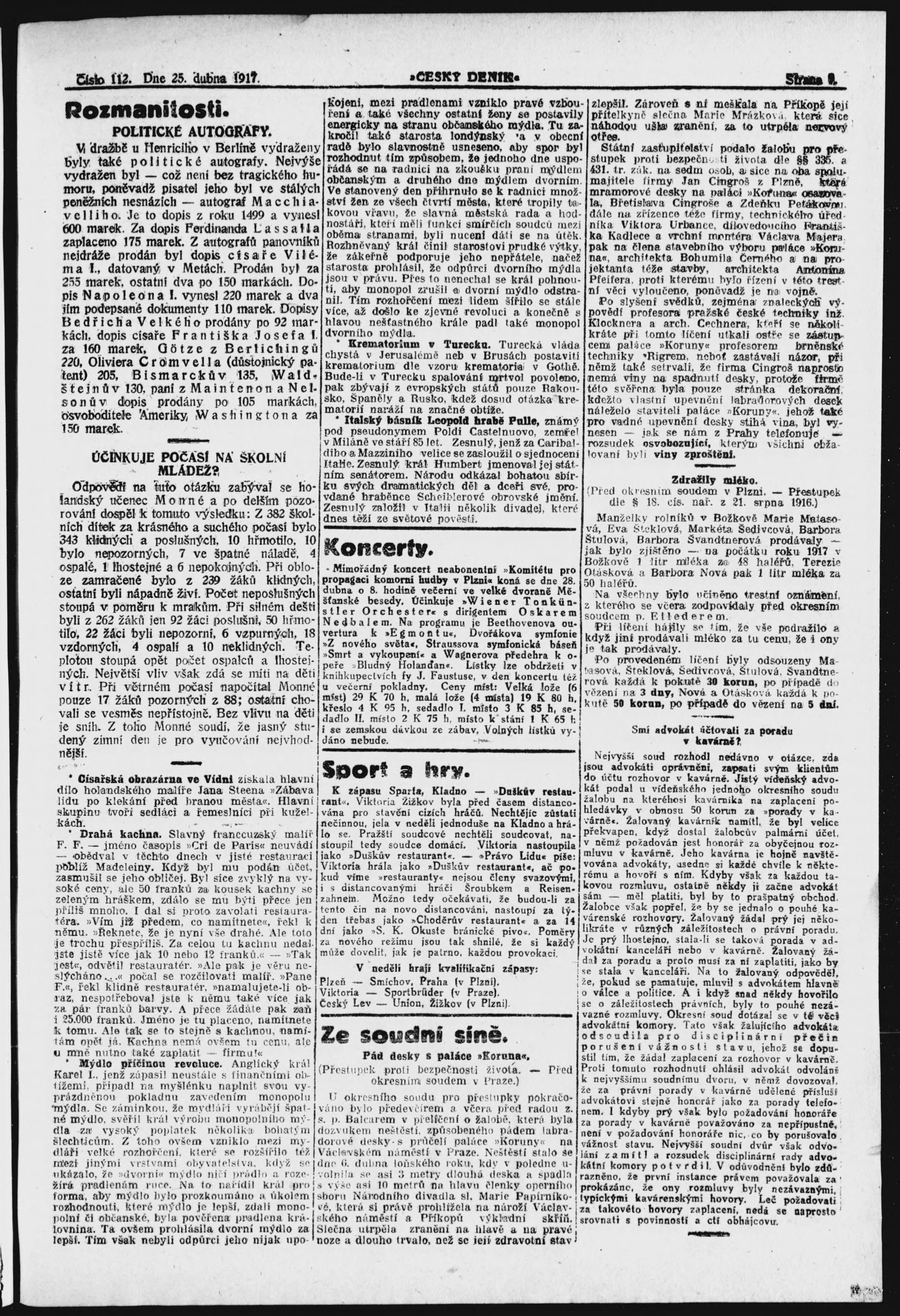 * Datum vydání výtisku: 25.4.1917 Číslo výtisku: 112