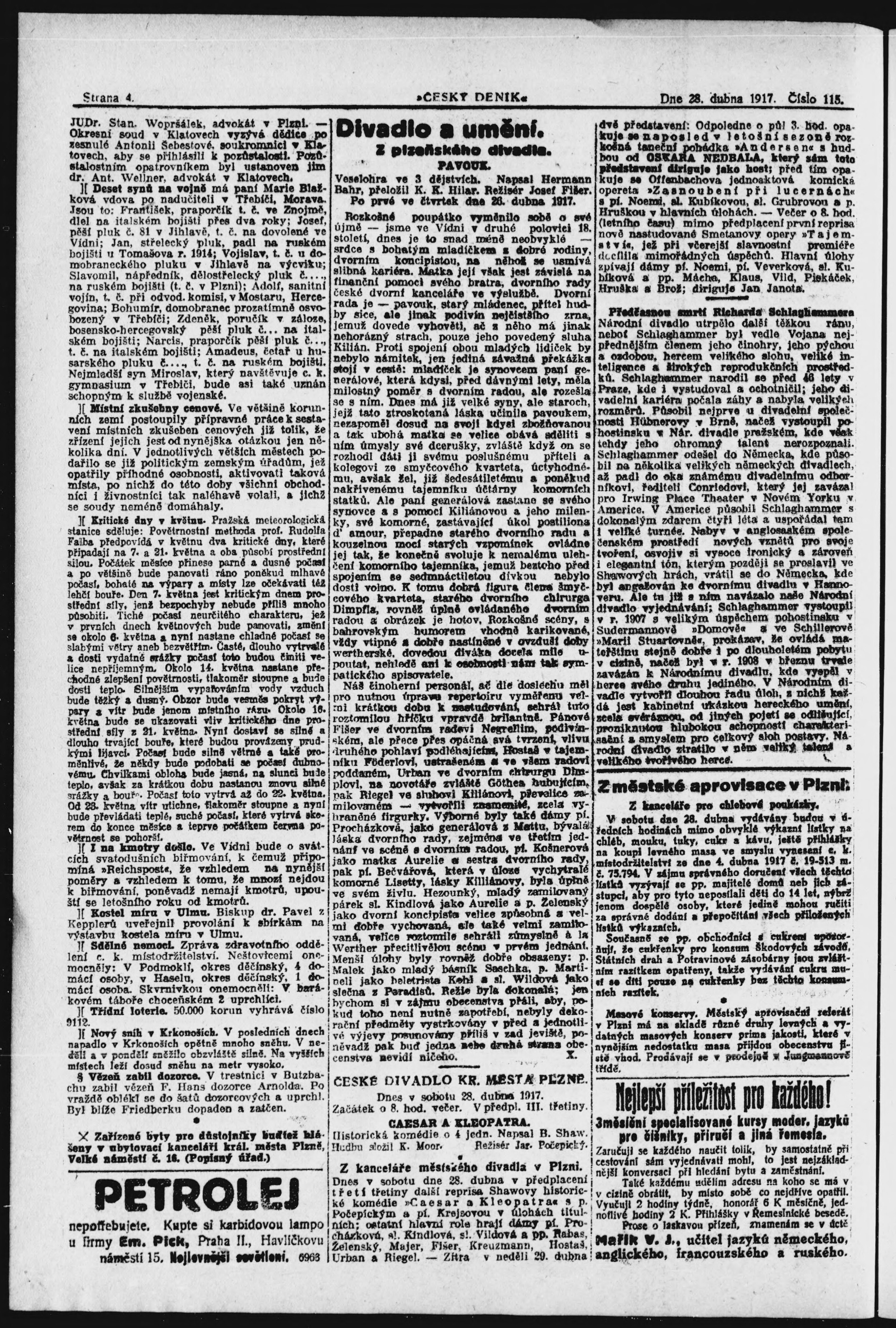 * Datum vydání výtisku: 28.4.1917 Číslo výtisku: 115