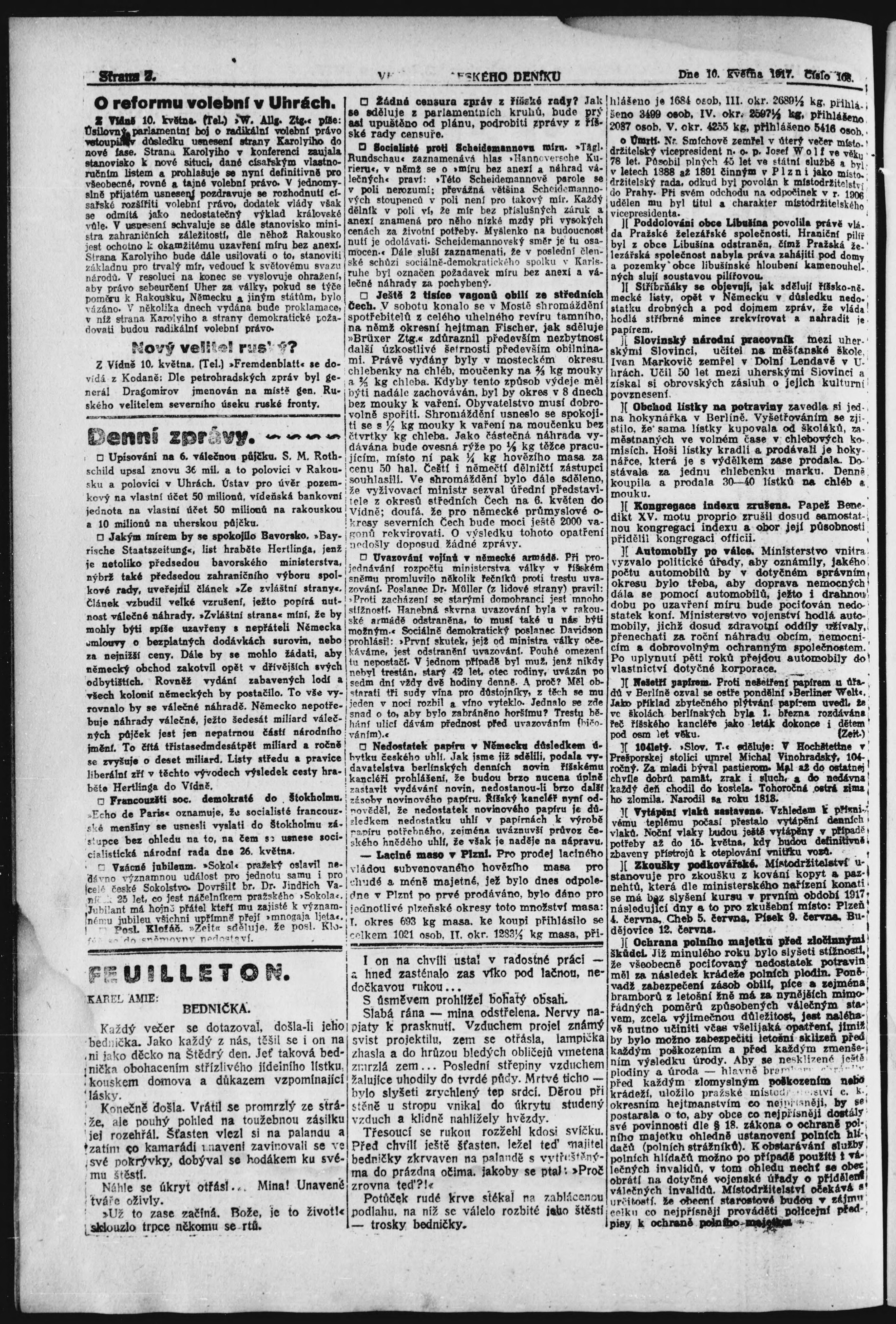 * Datum vydání výtisku: 10.5.1917 Číslo výtisku: 108 Poznámky k výtisku: večerní vydání;