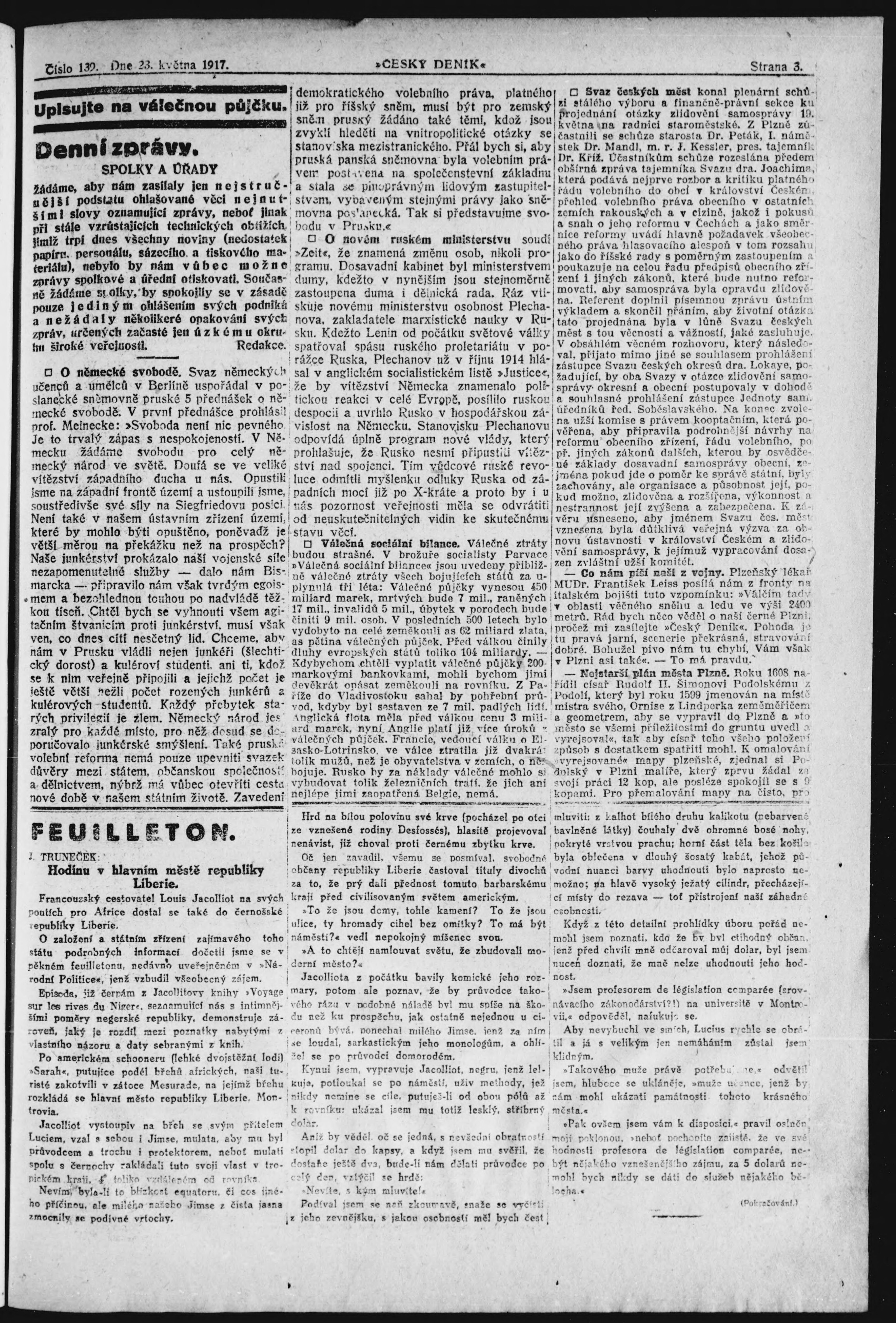 * Datum vydání výtisku: 23.5.1917 Číslo výtisku: 139