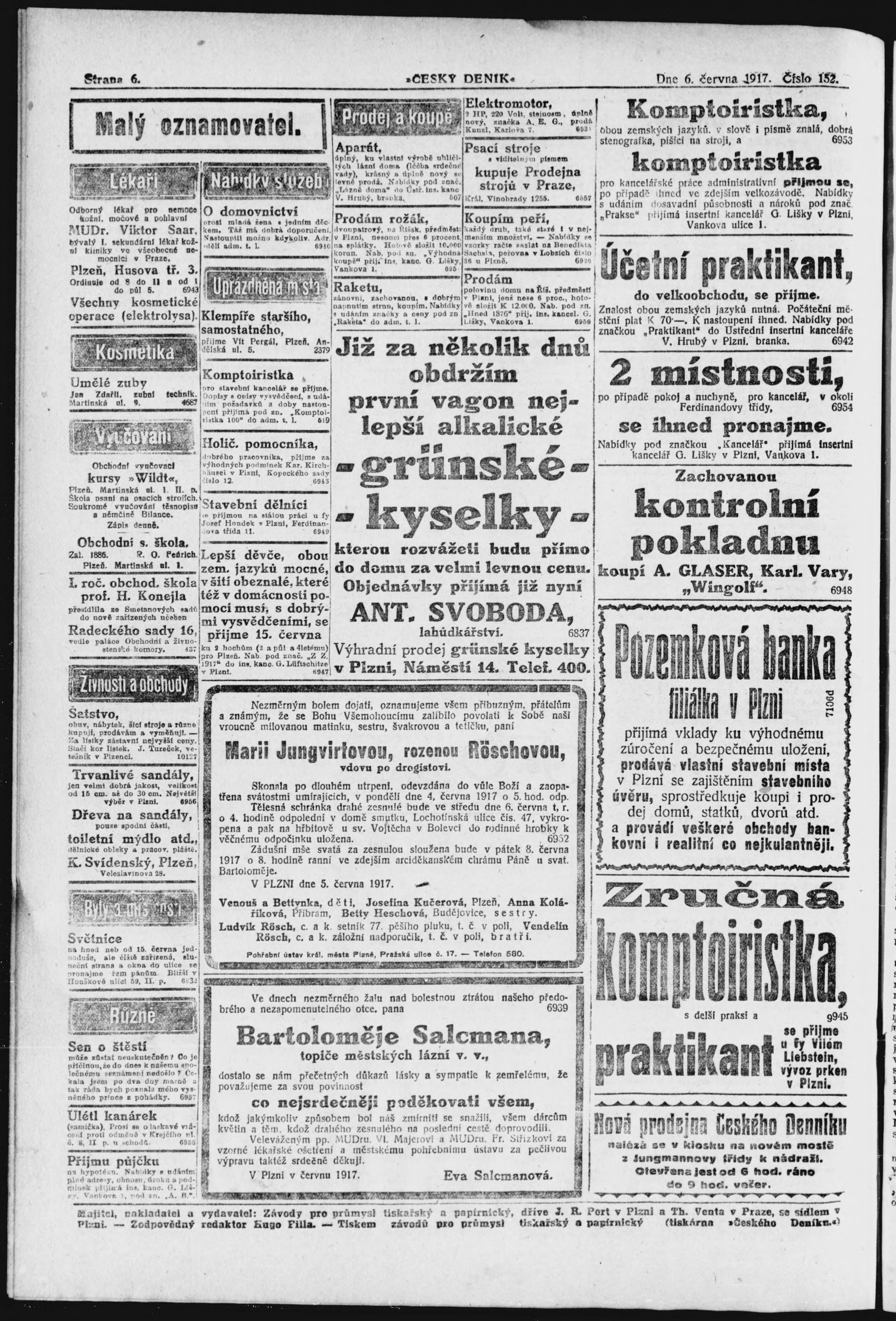 * Datum vydání výtisku: 6.6.1917 Číslo výtisku: 152