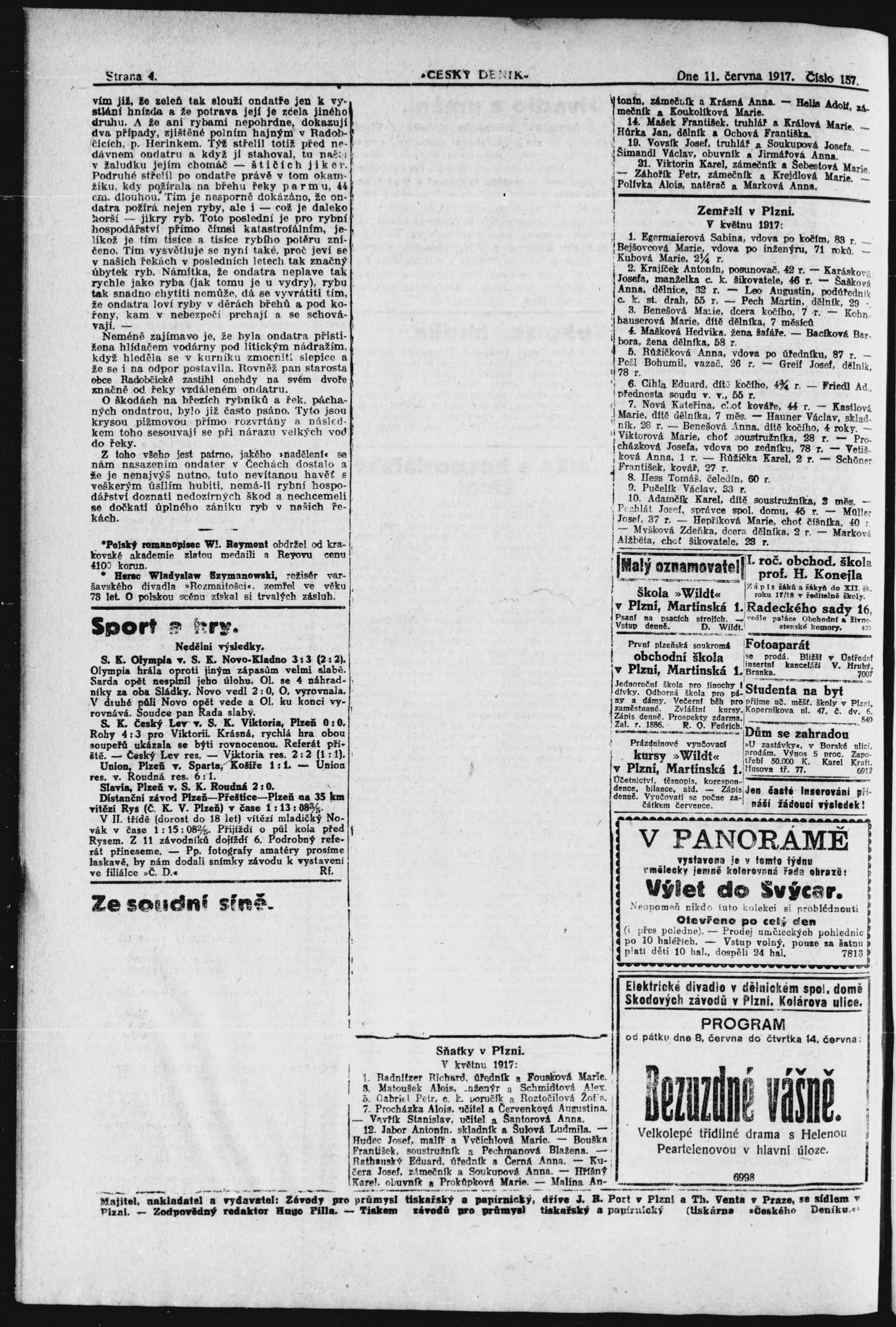 * Datum vydání výtisku: 11.6.1917 Číslo výtisku: 157