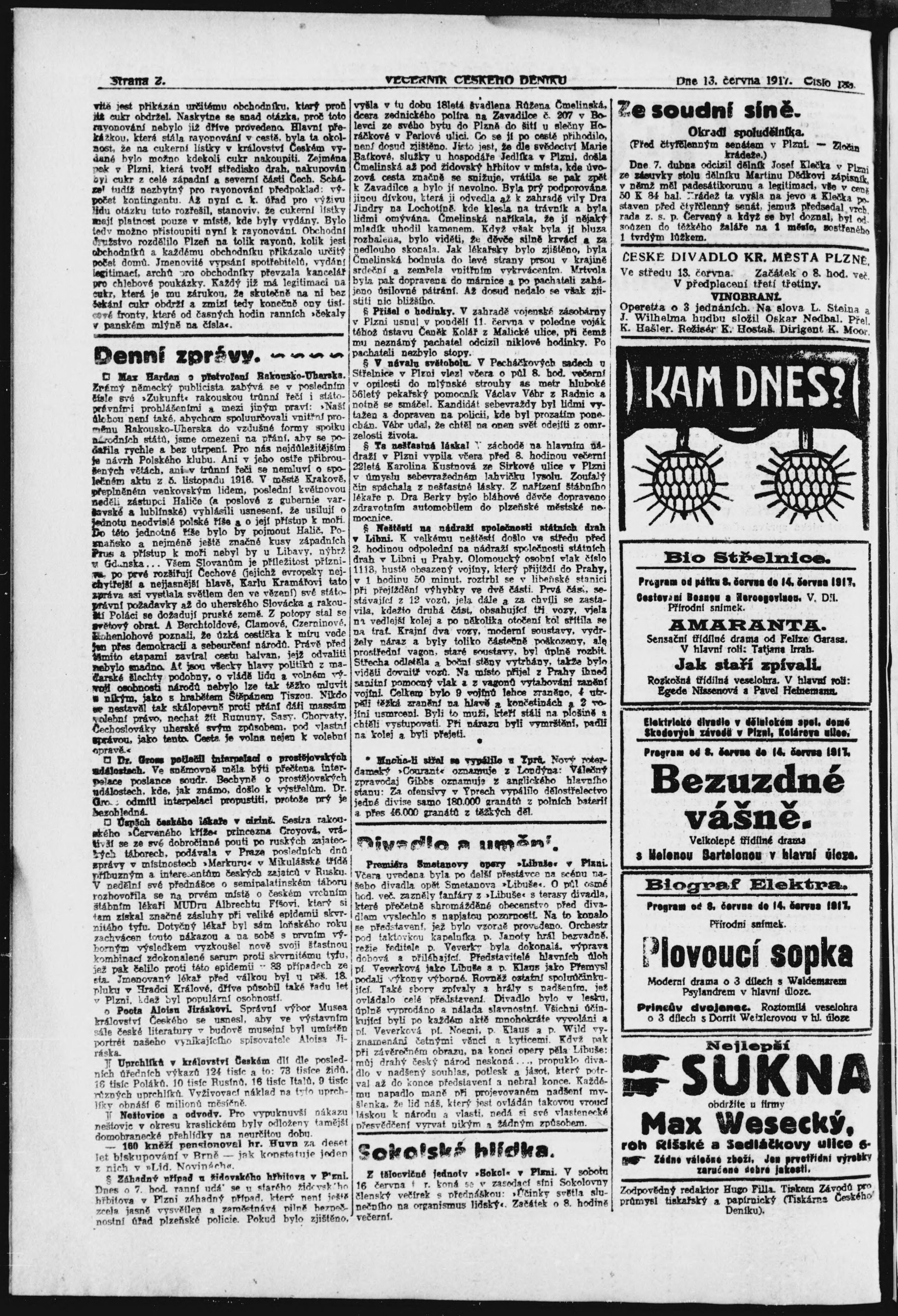 * Datum vydání výtisku: 13.6.1917 Číslo výtisku: 133 Poznámky k výtisku: večerní vydání;