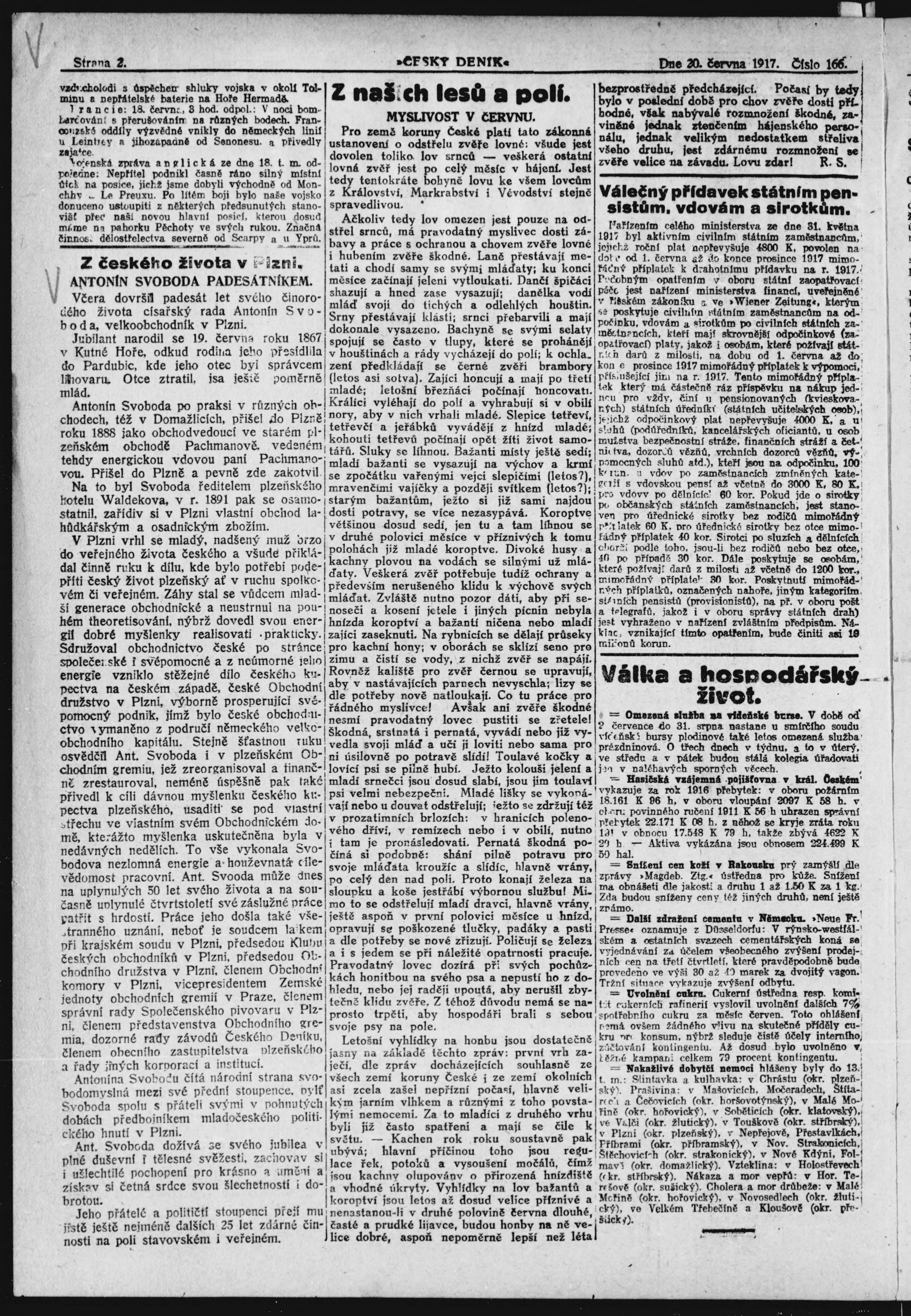 * Datum vydání výtisku: 20.6.1917 Číslo výtisku: 166